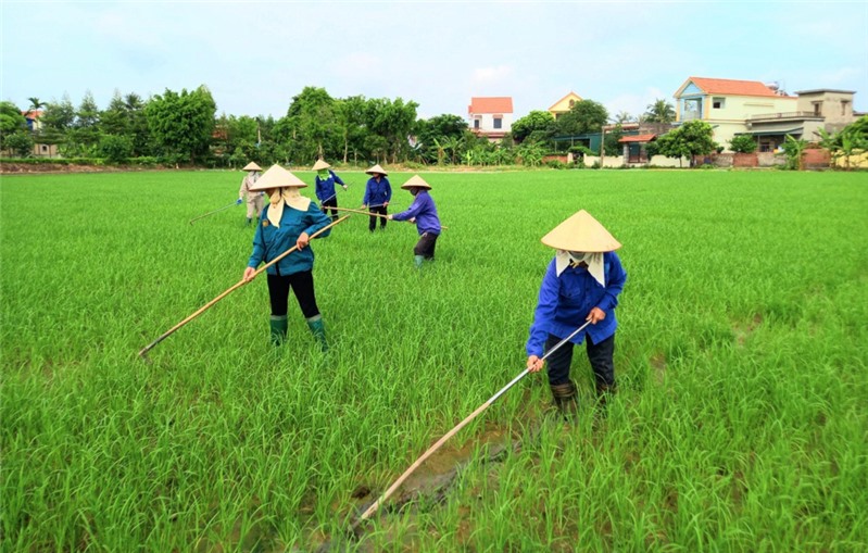 Nông dân phường Hồng Phong, TX Đông Triều chăm sóc diện tích lúa mùa.