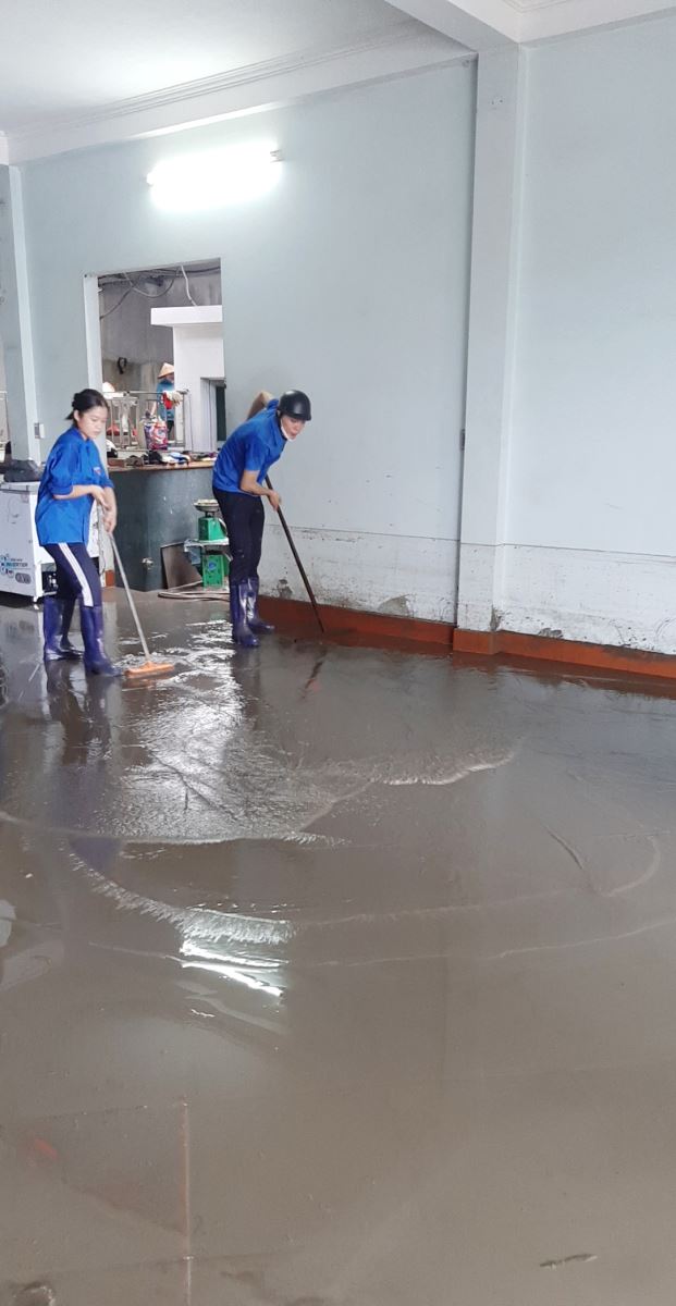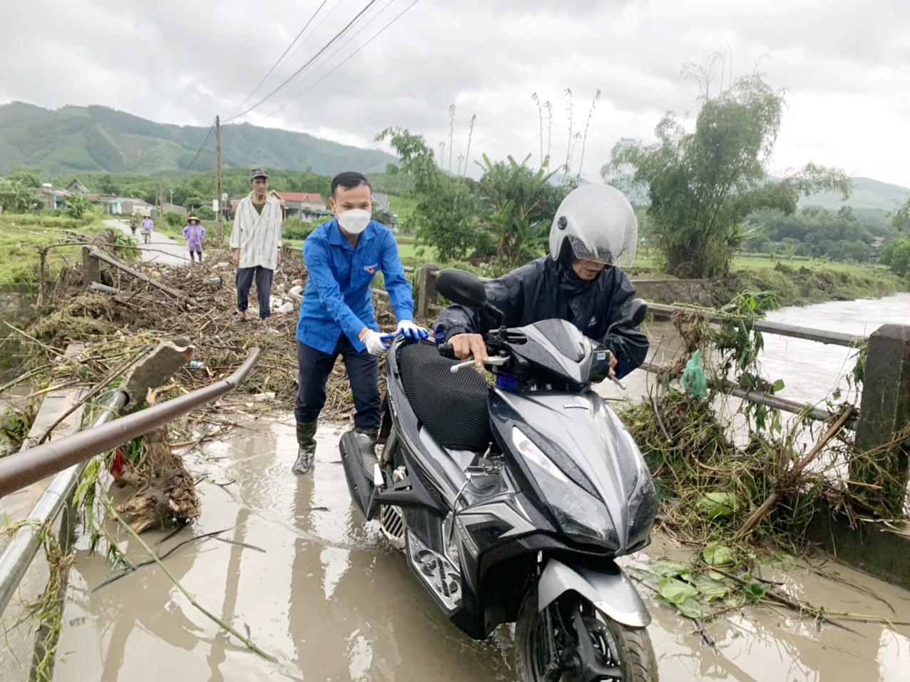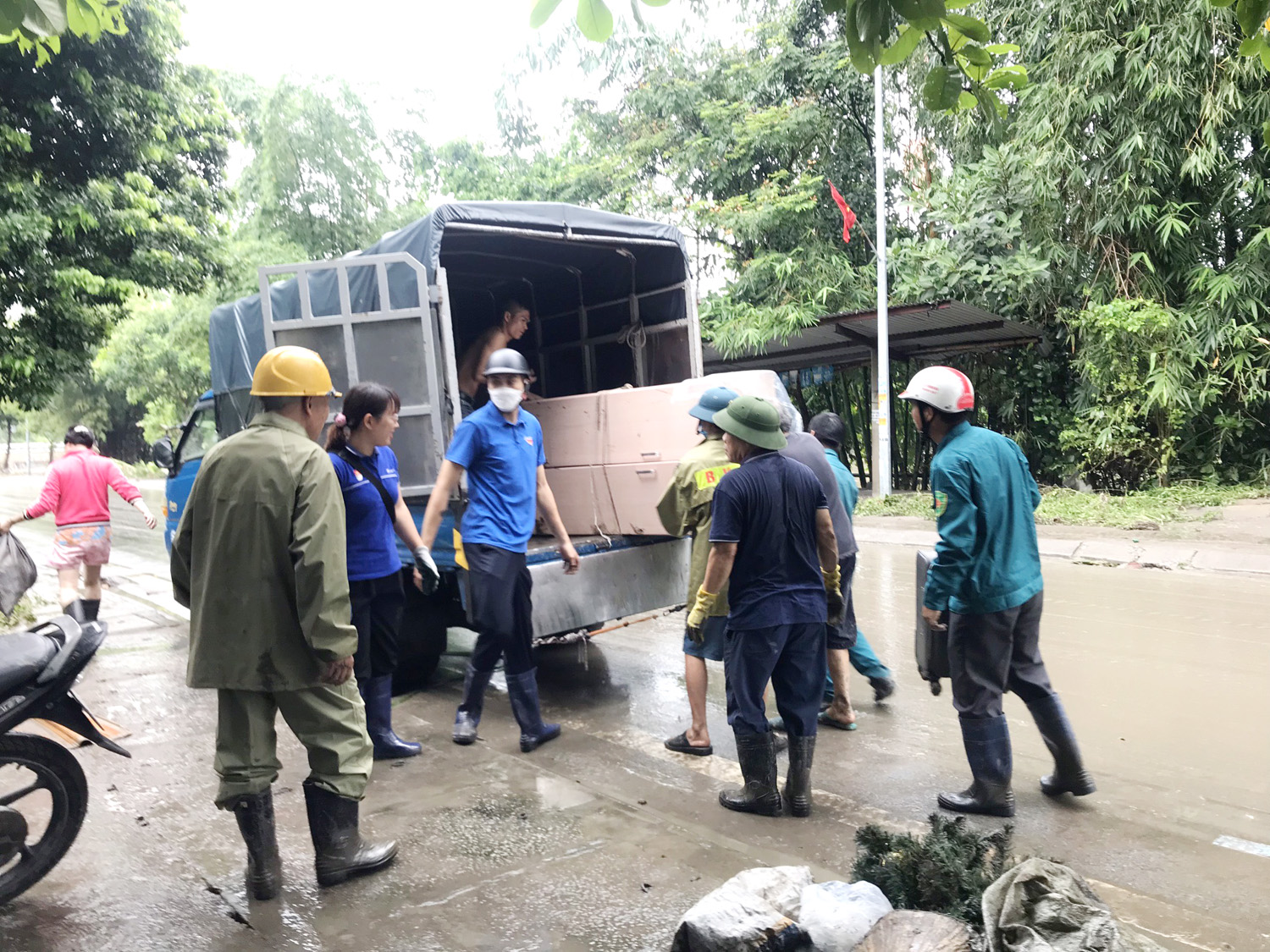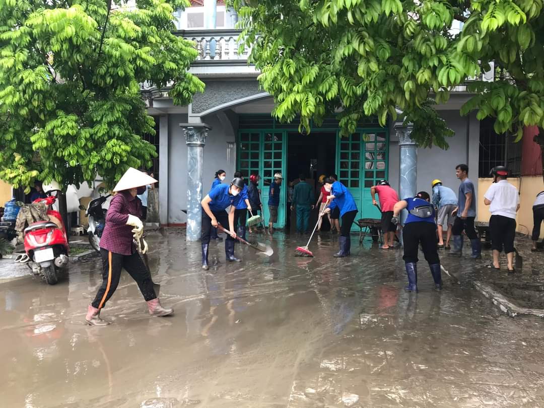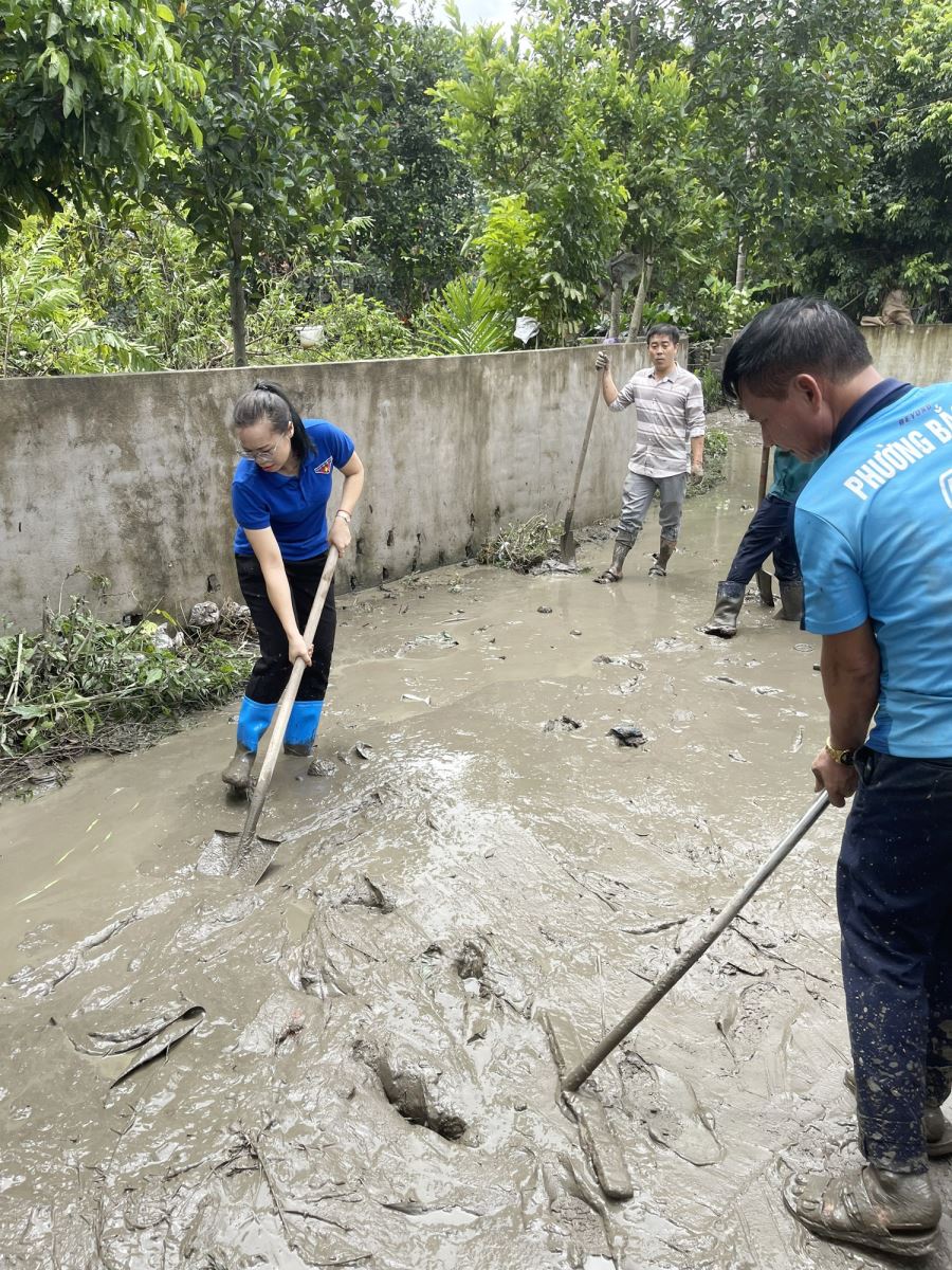 Đoàn thanh niên phường Trưng Vương giúp đỡ các hộ dân bị ảnh hưởng do mưa bão.