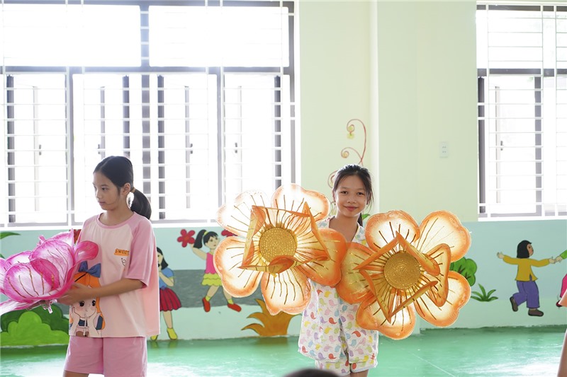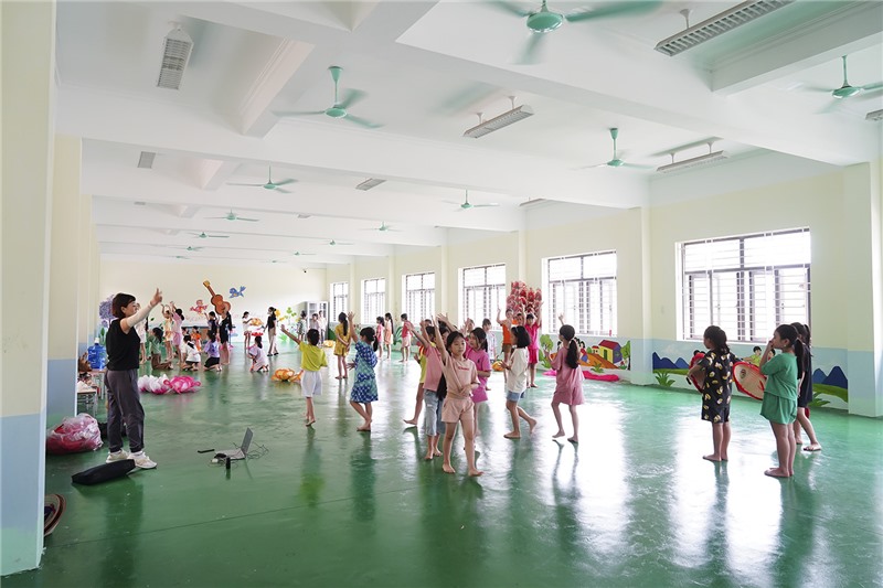 Cô và trò nhà trường tích cực luyện tập văn nghệ chuẩn bị cho lễ khai giảng năm học mới.