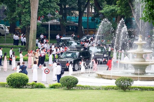 Trước đó, vào trưa cùng ngày, tại Phủ Chủ tịch, Chủ tịch nước Tô Lâm đã chủ trì lễ đón chính thức và hội đàm với Tổng thống Nga Vladimir Vladimirovich Putin.