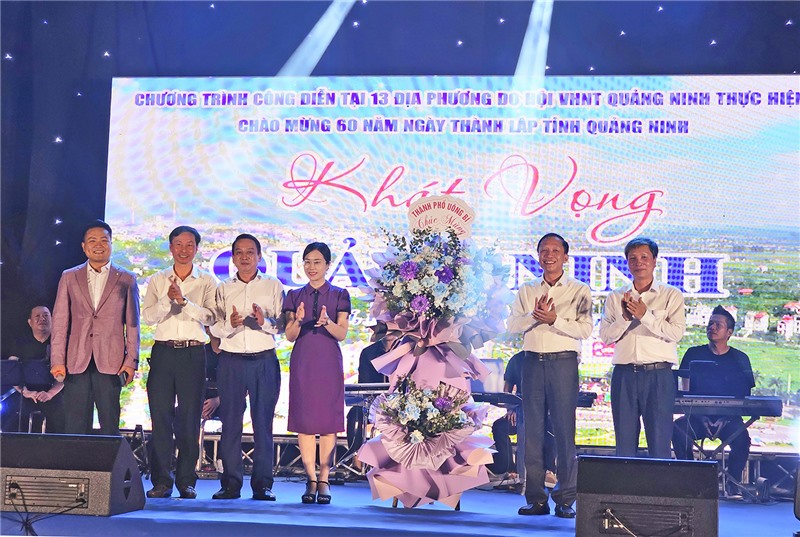 Các đồng chí lãnh đạo thành phố Uông Bí tặng hoa chúc mừng tại chương trình.