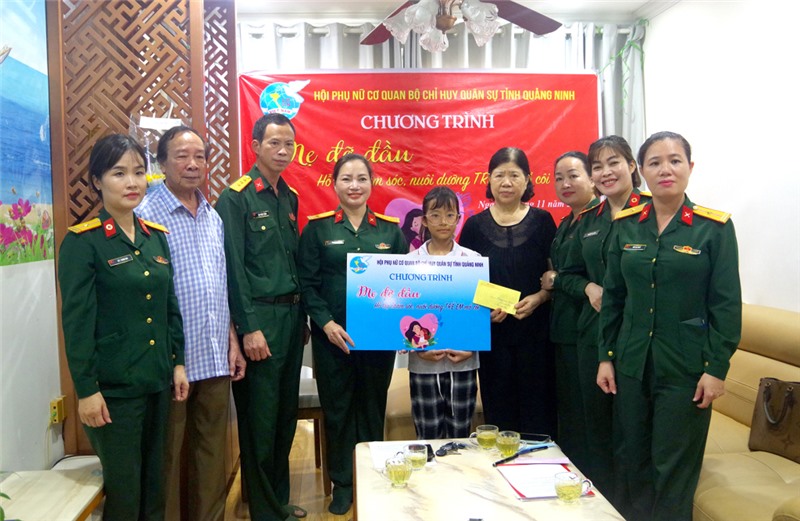 Vũ Thanh Hiền (SN 2013, trú tổ 4, khu 5, phường Bãi Cháy, TP Hạ Long; học sinh lớp 5, Trường Tiểu học Bãi Cháy) vừa được Hội Phụ nữ Cơ quan Bộ CHQS tỉnh nhận đỡ đầu đến năm 18 tuổi với số tiền 500.000 đồng/tháng. Hiền mồ côi cả cha và mẹ, hiện ở cùng bà nội.