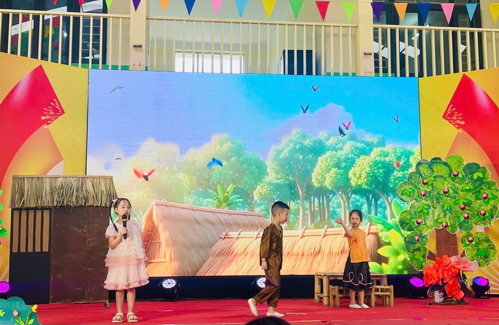 Đặc biệt, phần sân khấu hóa các tác phẩm văn học đã để lại nhiều ấn tượng sâu sắc. Các câu chuyện quen thuộc như “Tấm Cám”, “Ba cô gái”, “Thầy bói xem voi”, “Sự tích cây vú sữa”, “Thánh Gióng”… được các em thể hiện sinh động, sáng tạo, góp phần truyền tải những bài học ý nghĩa về lòng nhân ái, tình cảm gia đình, tinh thần dũng cảm và cách nhìn nhận cuộc sống một cách toàn diện.