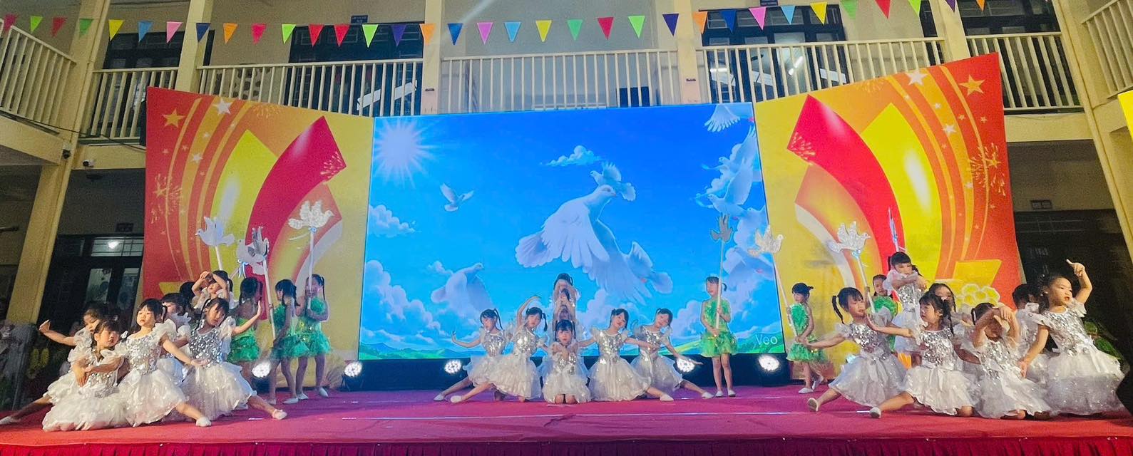 Điểm nhấn của chương trình là chuỗi tiết mục văn nghệ đặc sắc do chính các bé biểu diễn. Những màn múa, hát, nhảy sôi động như “Về miền cổ tích”, “Đưa cơm cho mẹ đi cày”, “Em như chim bồ câu trắng”… đã mang đến không khí vui tươi, hồn nhiên, thể hiện sự tự tin và năng khiếu nghệ thuật của trẻ.
