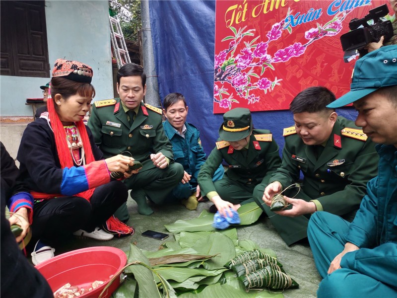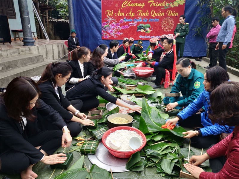 Trong chương trình, cán bộ, chiến sỹ BCH quân sự thành phố, hội viên hội cựu chiến binh, hội LHPN thành phố cùng đông đảo nhân dân trong thôn Miếu Thán đã tổ chức gói hơn 100 chiếc bánh chưng, bánh gù để gửi tặng những hộ gia đình có hoàn cảnh khó khăn trên địa bàn phường Vàng Danh. Năm nay là năm thứ 2 chương trình Tết ấm áp tình quân dân được các đơn vị phối hợp tổ chức. Đây là hoạt động có ý nghĩa, thể hiện tình quân dân gắn bó bền chặt, là sự chung tay của các cơ quan, đơn vị trên địa bàn thành phố hỗ trợ các gia đình có hoàn cảnh khó khăn vui xuân đón Tết.