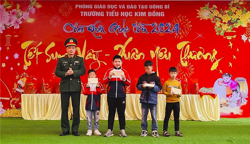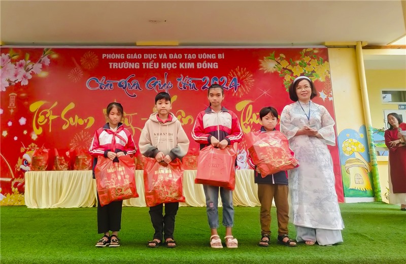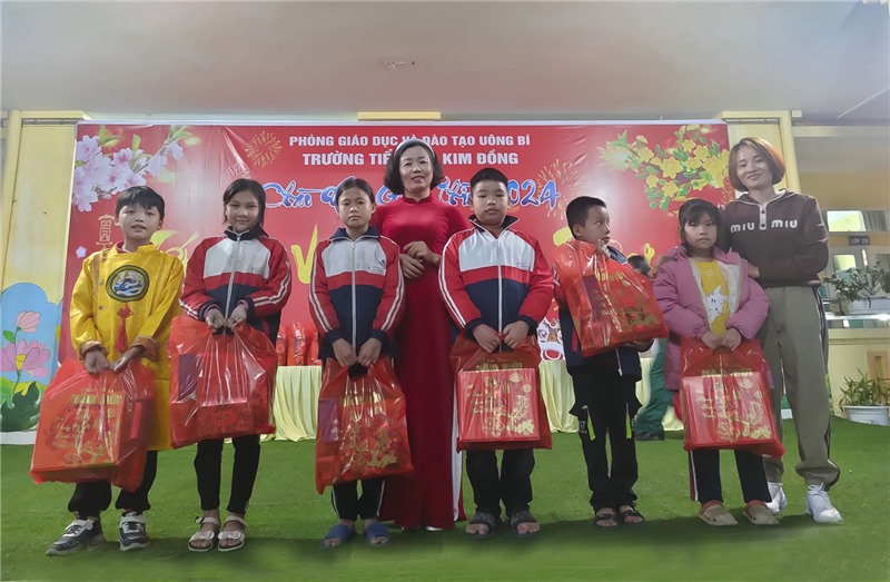 Thiết thực chào đón Tết Nguyên đán Giáp Thìn 2024, Trường Tiểu học Kim Đồng đã trao 21 suất quà cho học sinh có hoàn cảnh khó khăn. Đoàn Thanh niên Công than Nam Mẫu trao tặng 2 suất quà cho các em học sinh có hoàn cảnh khó khăn nỗ lực vươn lên trong học tập. Ban CHQS quân sự thành phố trao tặng 4 suất quà cho học sinh nhà trường. Công đoàn và Nhà trường thăm và tặng quà cho 3 gia đình cán bộ, giáo viên, nhân viên nhà trường.