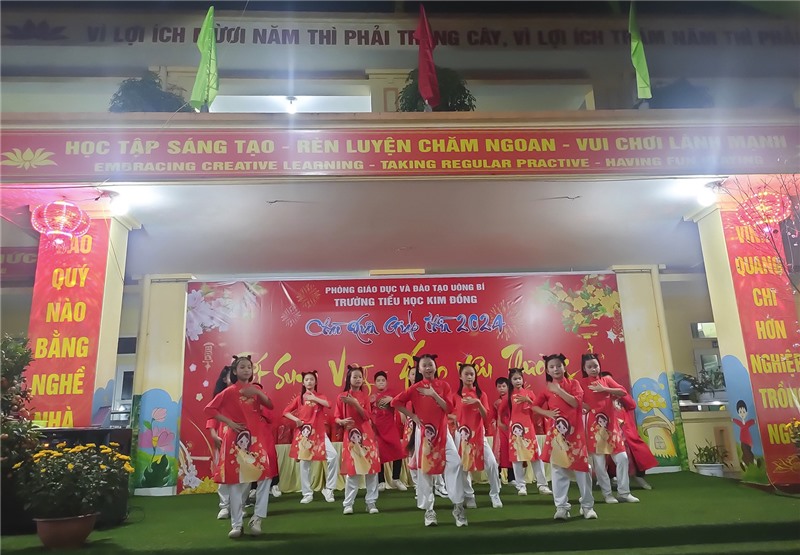 Ngày 02/02, Trường Tiểu học Kim Đồng tưng bừng tổ chức Chương trình ngoại khóa Tết sum vầy - Xuân yêu thương chào đón Tết Giáp Thìn năm 2024.