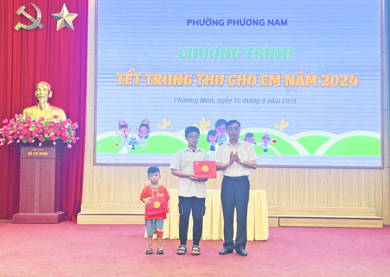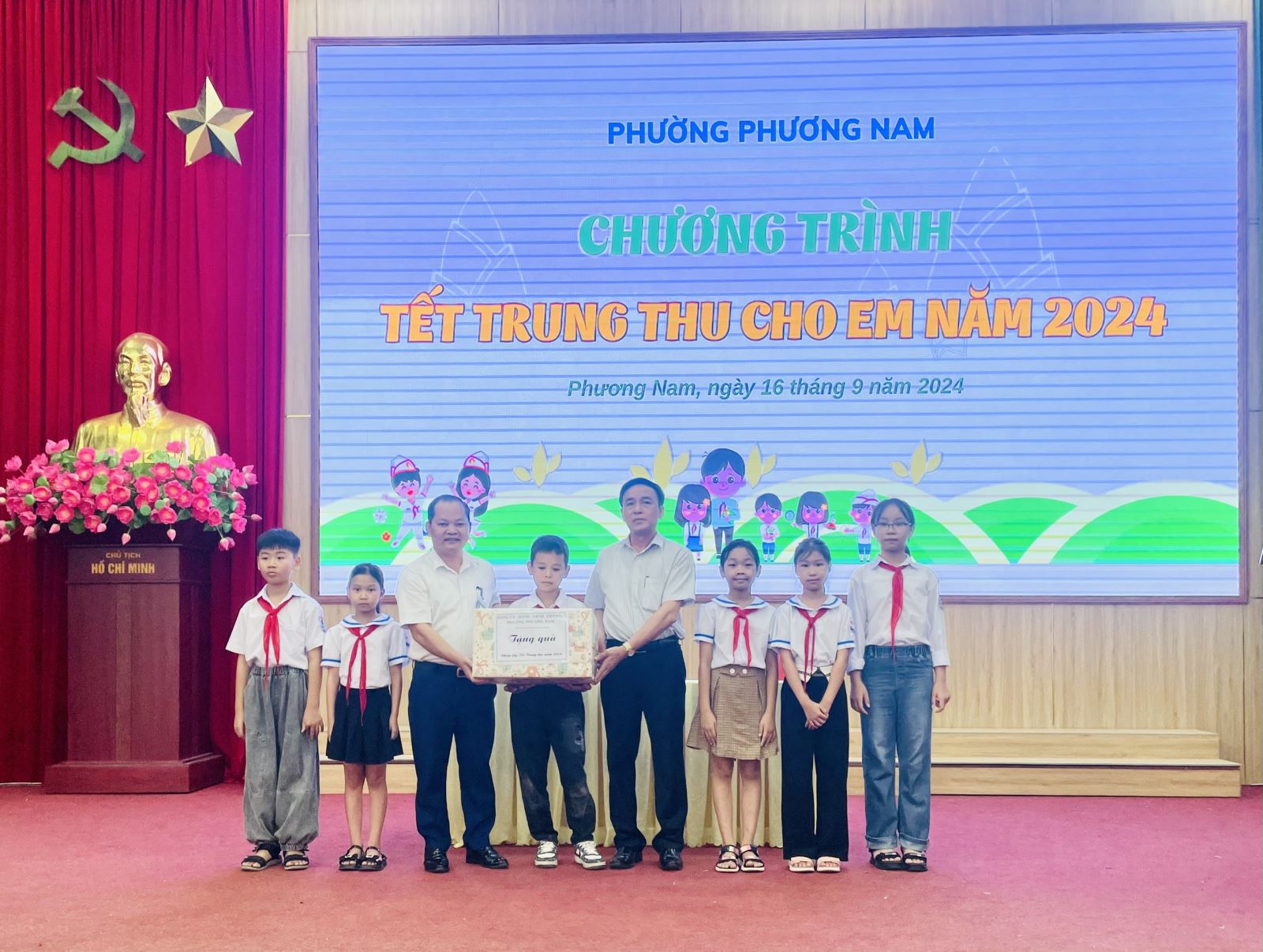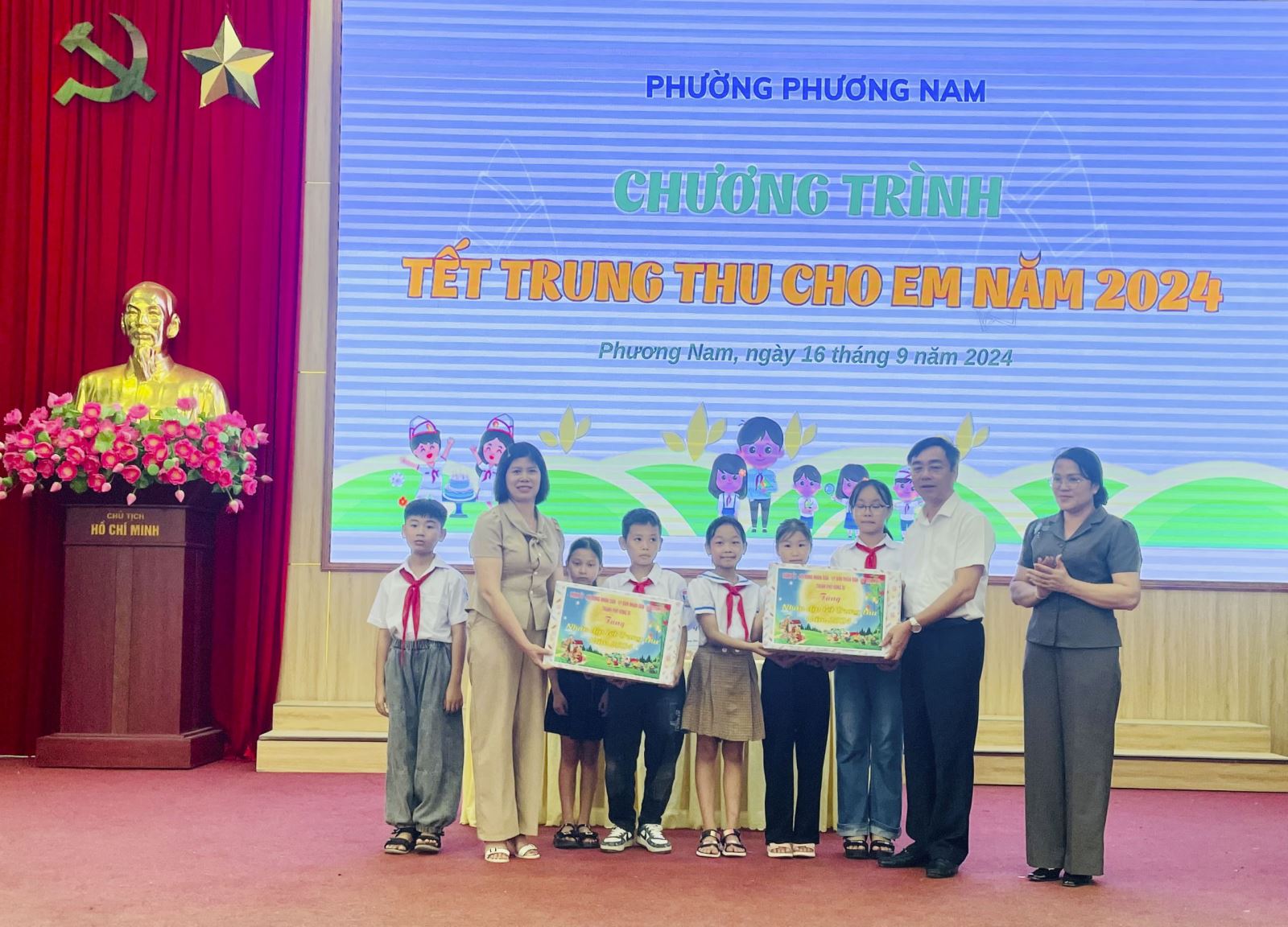 Nhân dịp Tết Trung thu, các đồng chí lãnh đạo thành phố, lãnh đạo phường Phương Nam đã tặng quà Tết Trung thu cho thiếu niên, nhi đồng. Đại biểu lãnh đạo thành phố đã trao tặng 2 suất quà, phường Phương Nam tặng 10 suất quà cho trẻ em khó khăn, gửi gắm niềm hy vọng các em luôn chăm ngoan, học giỏi, trở thành những công dân có ích cho xã hội, đóng góp vào sự phát triển của quê hương, đất nước trong tương lai.