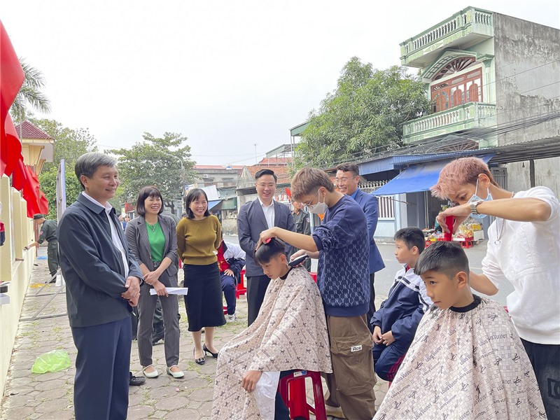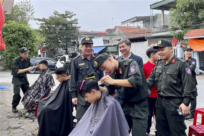 Trung đoàn Cảnh sát cơ động Đông Bắc và Hội LHTN Việt Nam tổ chức cắt tóc miễn phí cho thanh thiếu nhi và người dân tại Trường THCS Yên Thanh.