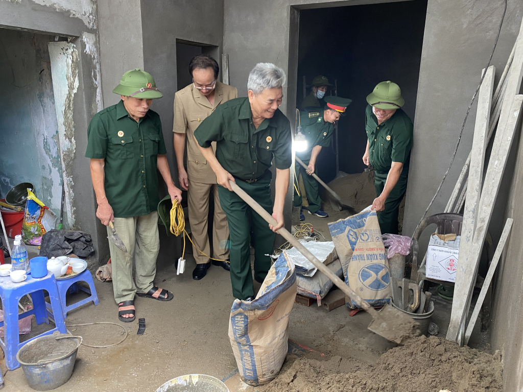Thương binh hạng 2/4 Vũ Tiến Thanh (người cầm xẻng) cùng các CCB khu 4, phường Trần Hưng Đạo (TP Hạ Long) giúp đỡ gia đình hộ khó khăn xây nhà.