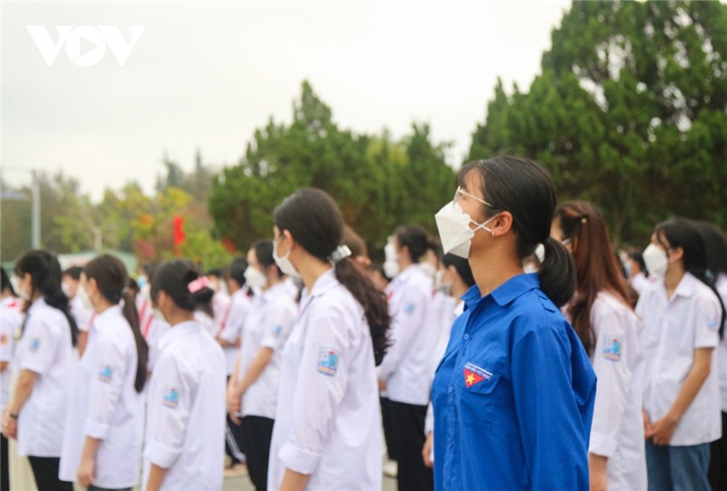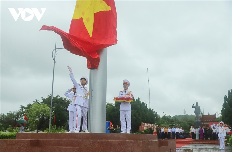 Nghi lễ thượng cờ trang trọng tại Quảng trường Di tích quốc gia đặc biệt Khu lưu niệm Chủ tịch Hồ Chí Minh trên đảo Cô Tô