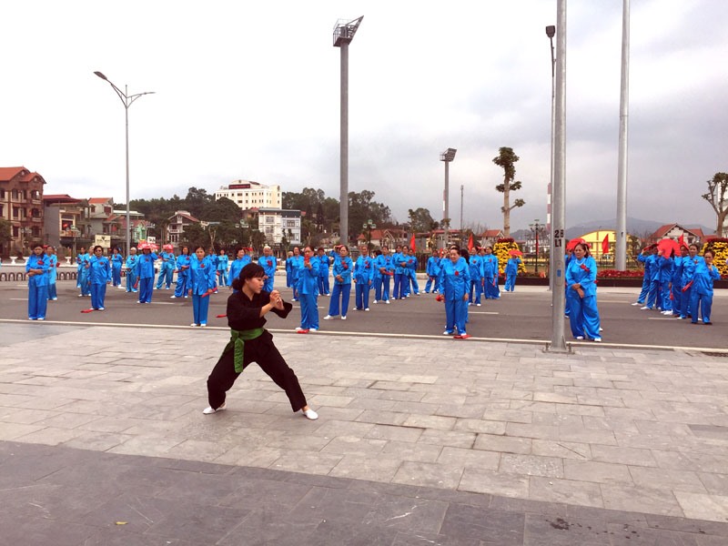 Trong chương trình, 120 hội viên CLB võ thuật cổ truyền thành phố đã tham gia đồng diễn thái cực quyền và các bài võ thuật. Từng động tác uyển chuyển, mạnh mẽ của các bài quyền mang đến tinh thần trẻ, khỏe, tươi vui cho những ngày đầu xuân năm mới.