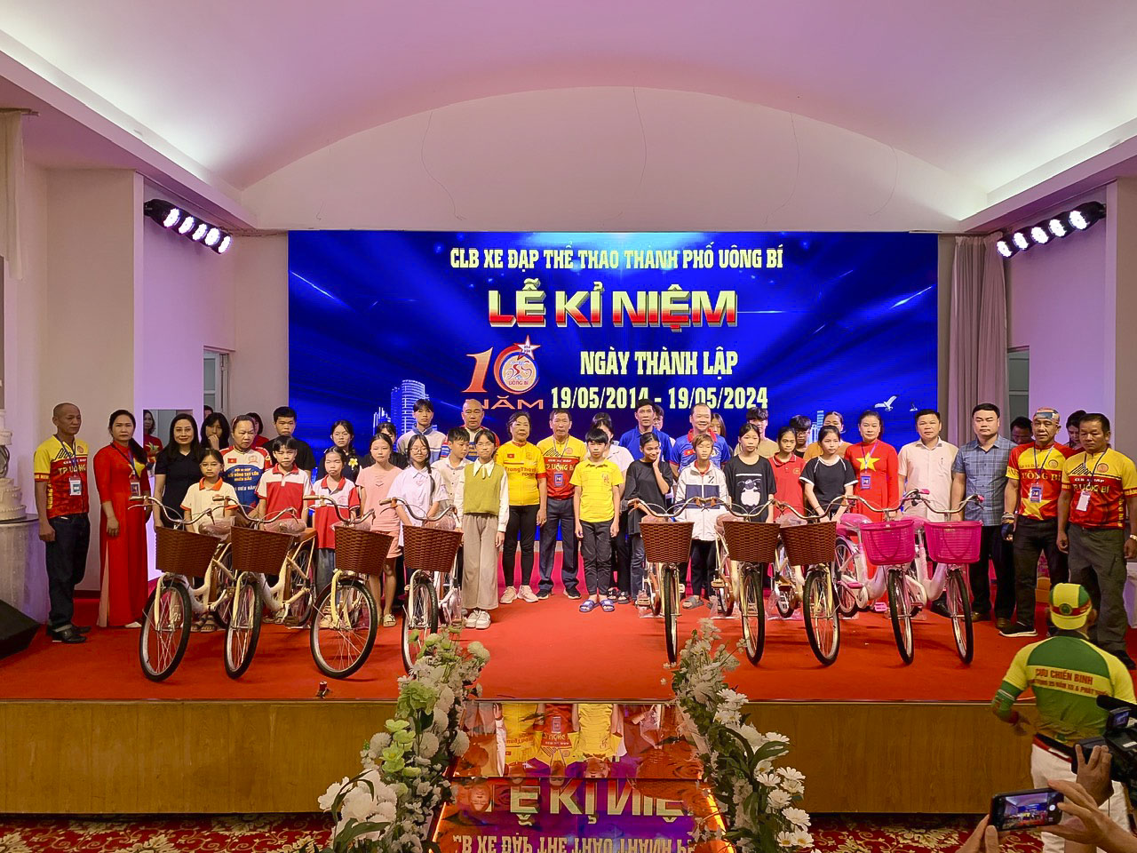 Nhân dịp này, CLB xe đạp thể thao thành phố Uông Bí đã tặng 25 xe đạp cho trẻ em có hoàn cảnh khó khăn nhằm tiếp thêm động lực, đồng hành, động viên các em trên hành trình chinh phục tri thức.