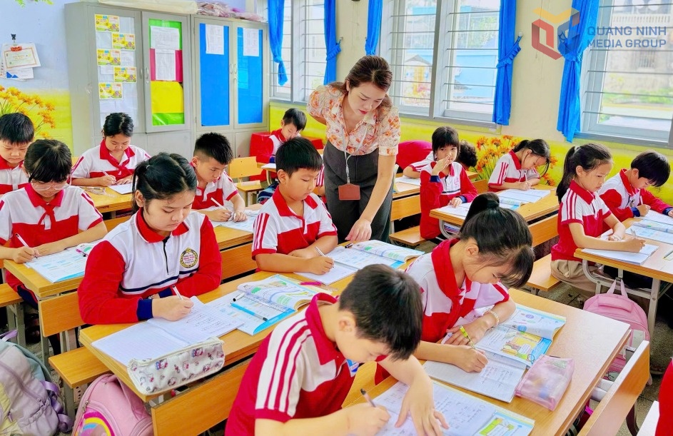 Cô giáo Đoàn Thị Chính dạy học sinh lớp 3A7.