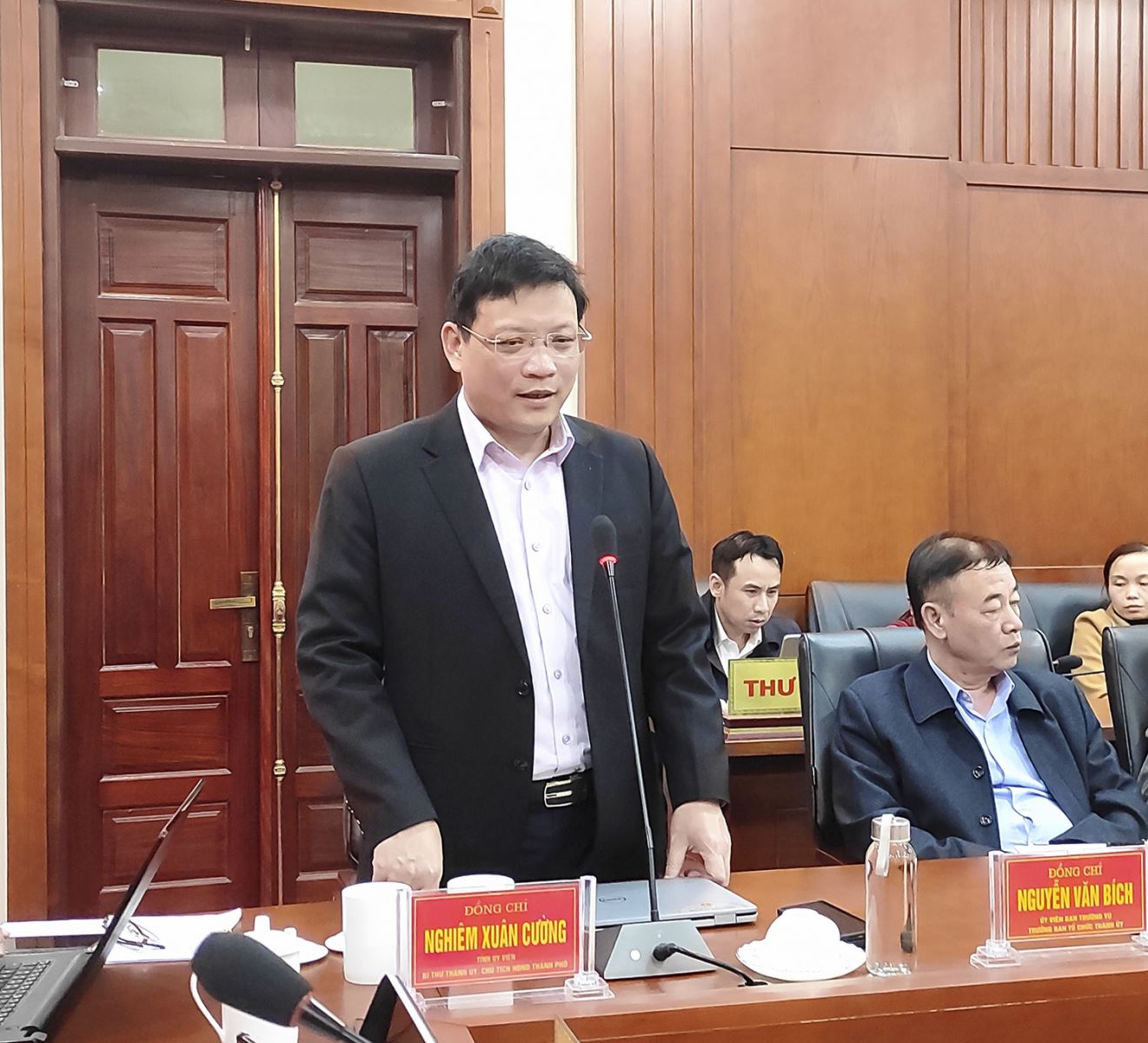 Đồng chí Nghiêm Xuân Cường, Tỉnh uỷ viên, Bí thư Thành uỷ, Chủ tịch HĐND thành phố phát biểu chỉ đạo.