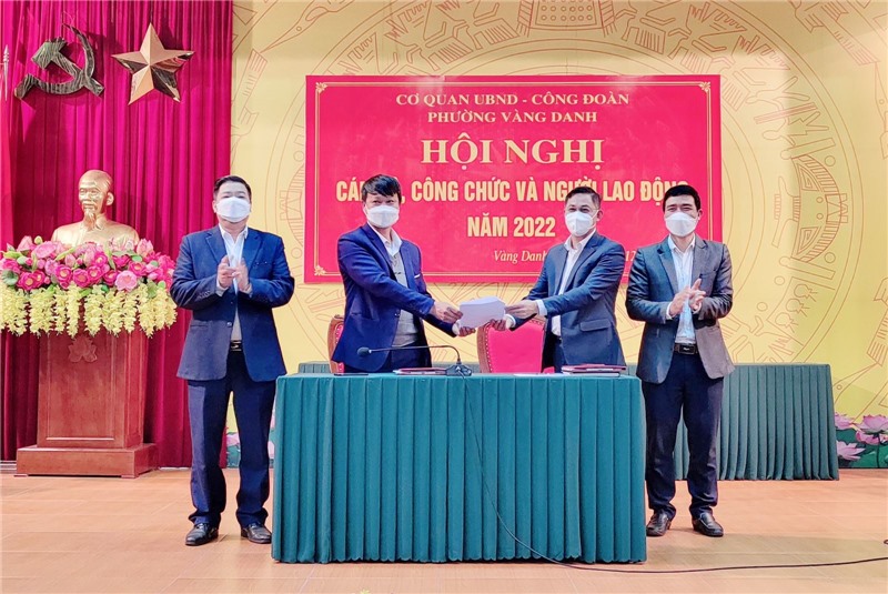 Tại hội nghị, cơ quan UBND và BCH Công đoàn phường Vàng Danh đã phát động, ký kết giao ước thi đua trong cán bộ, công chức, người lao động, phấn đấu hoàn thành và hoàn thành vượt mức các chỉ tiêu, nhiệm vụ phát triển kinh tế - xã hội năm 2022 của địa phương.