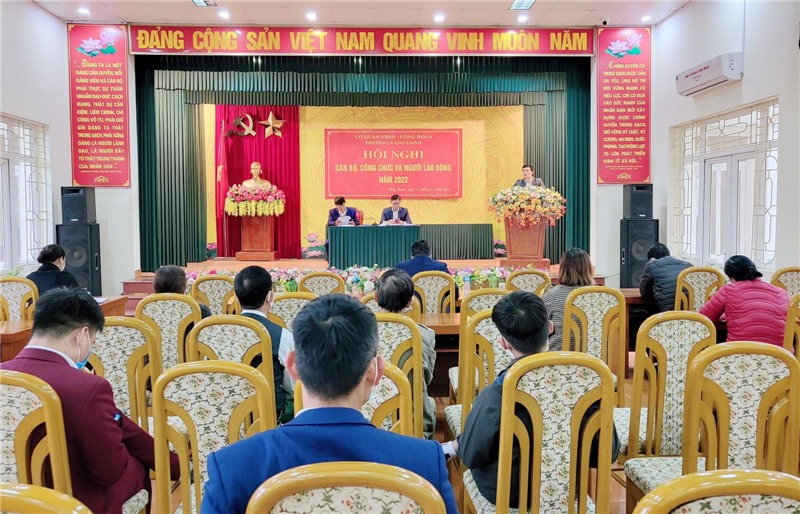 Ngày 31/12, cơ quan UBND phường Vàng Danh tổ chức hội nghị cán bộ công chức và phát động phong trào thi đua năm 2022. Đồng chí Vũ Đức Quyền, Phó Chủ tịch LĐLĐ thành phố dự hội nghị.