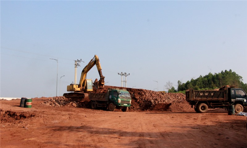 Thi công tuyến đường gom cao tốc Vân Đồn - Tiên Yên.