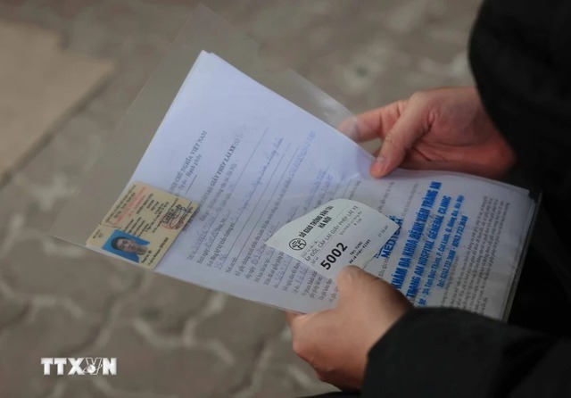 Một người dân lấy được số thứ tự để làm thủ tục cấp, đổi giấy phép lái xe tại Sở GTVT Hà Nội. (Ảnh: Hoàng Hiếu - TTXVN)