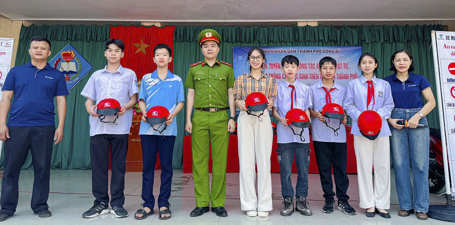 Trong khuôn khổ chương trình, Công ty TNHH Thành Đạt đã trao tặng hàng trăm chiếc mũ bảo hiểm đạt chuẩn và áo mưa cho học sinh, kèm theo hơn 800 chiếc quạt tay in thông điệp tuyên truyền an toàn giao thông. Những món quà thiết thực này không chỉ mang giá trị vật chất mà còn là lời nhắc nhở về việc tuân thủ quy định khi tham gia giao thông, góp phần bảo vệ an toàn tính mạng ngay từ những hành động nhỏ nhất như đội mũ bảo hiểm đúng cách.