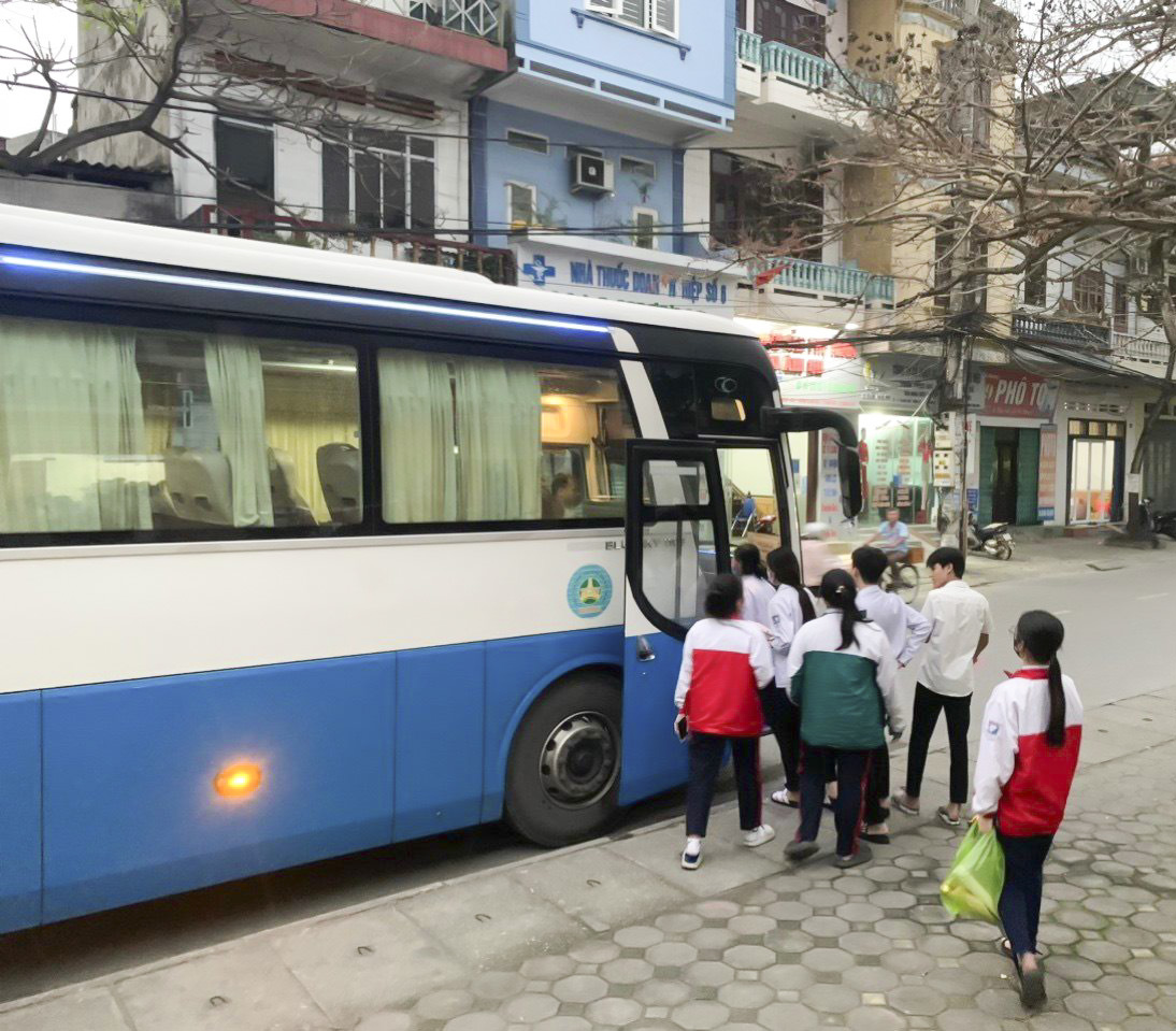 Xe đưa học sinh từ phường Vàng Danh ra Trung tâm HCC thành phố.
