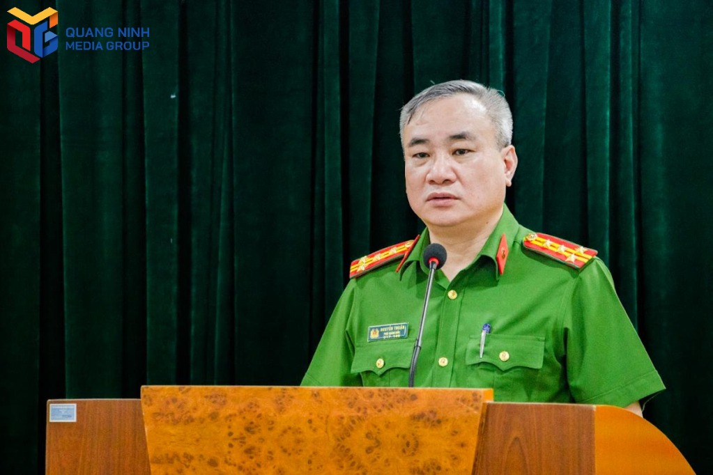 Đại tá Nguyễn Thuận, Phó Giám đốc Công an tỉnh, phát biểu chỉ đạo tại hội nghị.