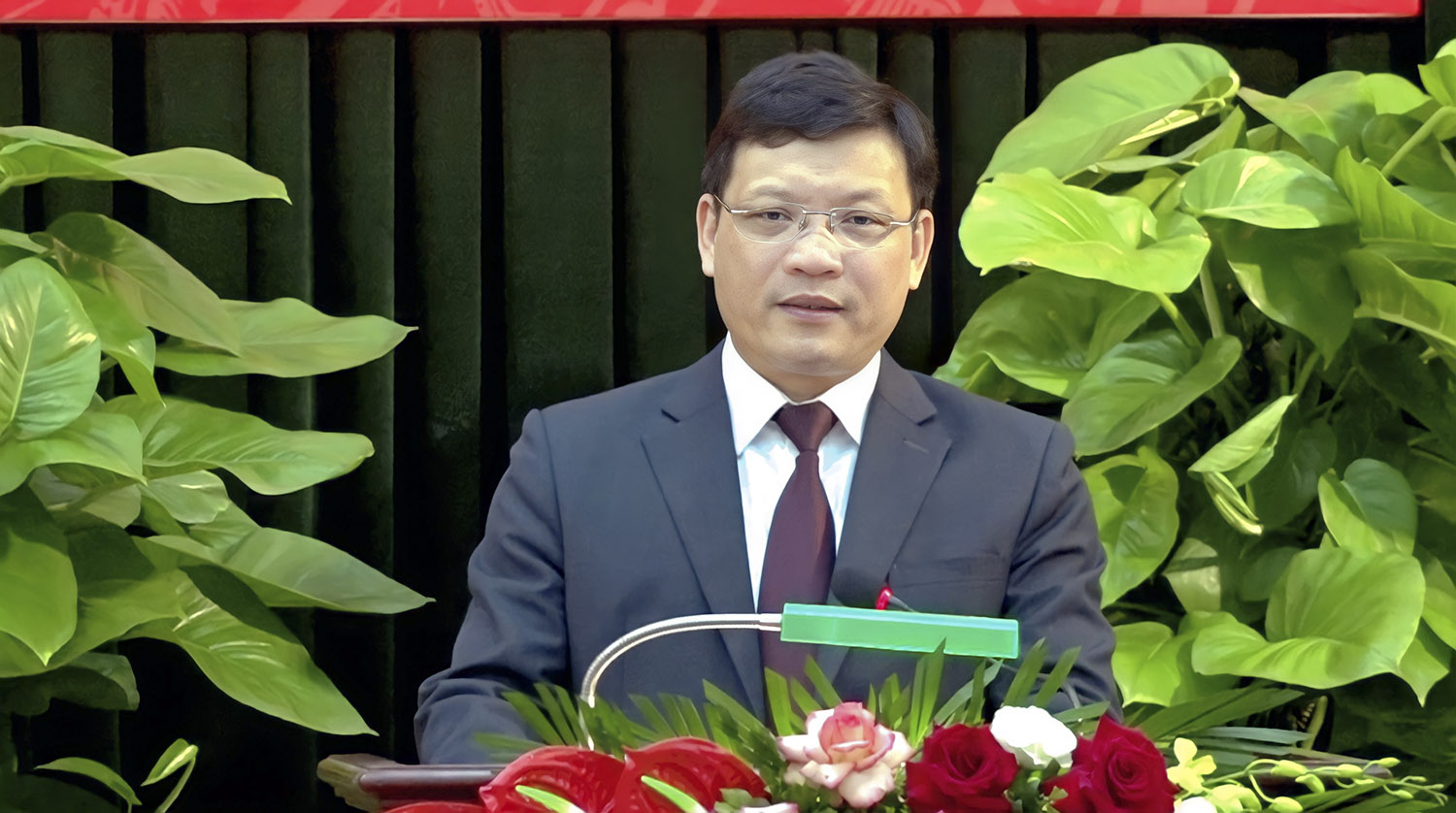 Đồng chí Nghiêm Xuân Cường, Tỉnh ủy viên, Bí thư Thành ủy, Chủ tịch HĐND thành phố Uông Bí phát biểu tại hội nghị.