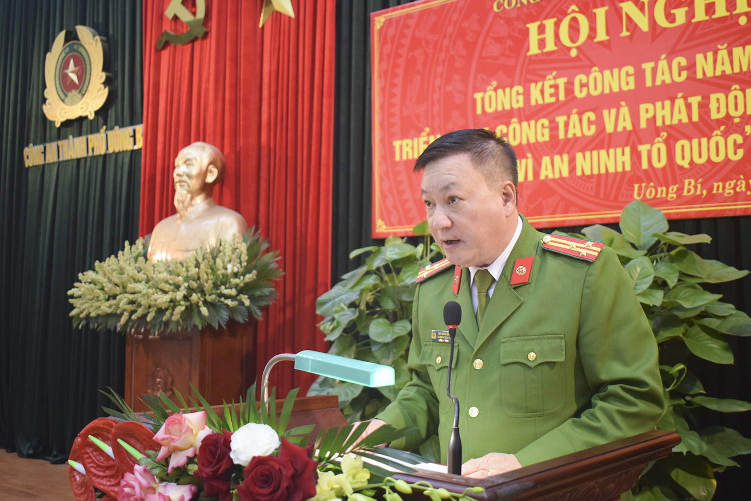 Đồng chí Bí thư Thành ủy yêu cầu, năm 2023 có ý nghĩa quan trọng, có tính chất bản lề để thực hiện thắng lợi các mục tiêu đã đề ra trong nhiệm kỳ, do đó lực lượng Công an TP Uông Bí cần tăng cường công tác xây dựng đảng, xây dựng lực lượng trong sạch vững mạnh, gắn với việc thực hiên Chỉ thị số 05 của Bộ Chính trị; tiếp tục tham mưu cho cấp ủy, chính quyền địa phương trong công tác đảm bảo ANTT, thực hiện NQ 12 của Bộ Chính trị; chủ động làm tốt công tác nắm tình hình, đấu tranh phòng chống tội phạm, đồng thời, đẩy mạnh phong trào toàn dân bảo vệ ANTQ và tiếp tục triển khai tốt mô hình An ninh cơ sở...