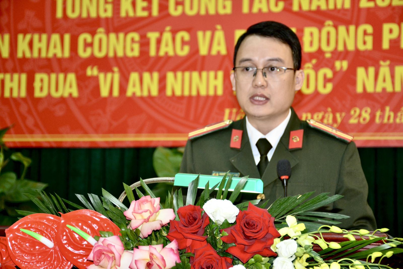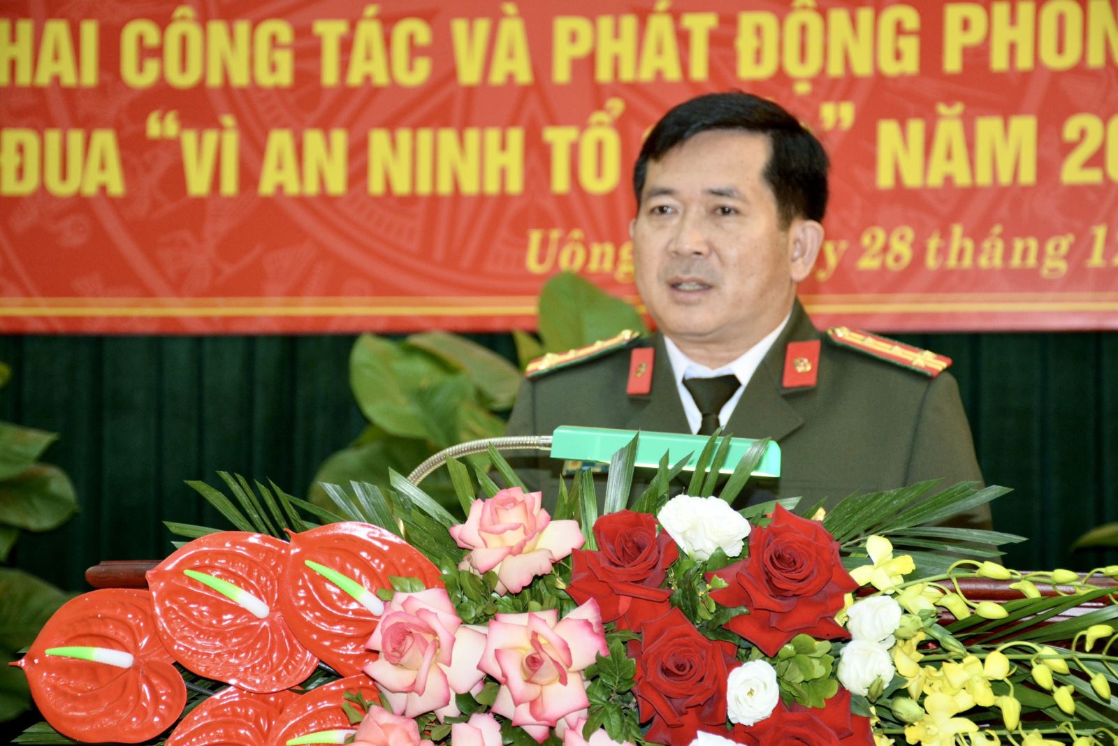 Đại tá Đinh Văn Nơi, Giám đốc Công an tỉnh phát biểu chỉ đạo tại hội nghị.