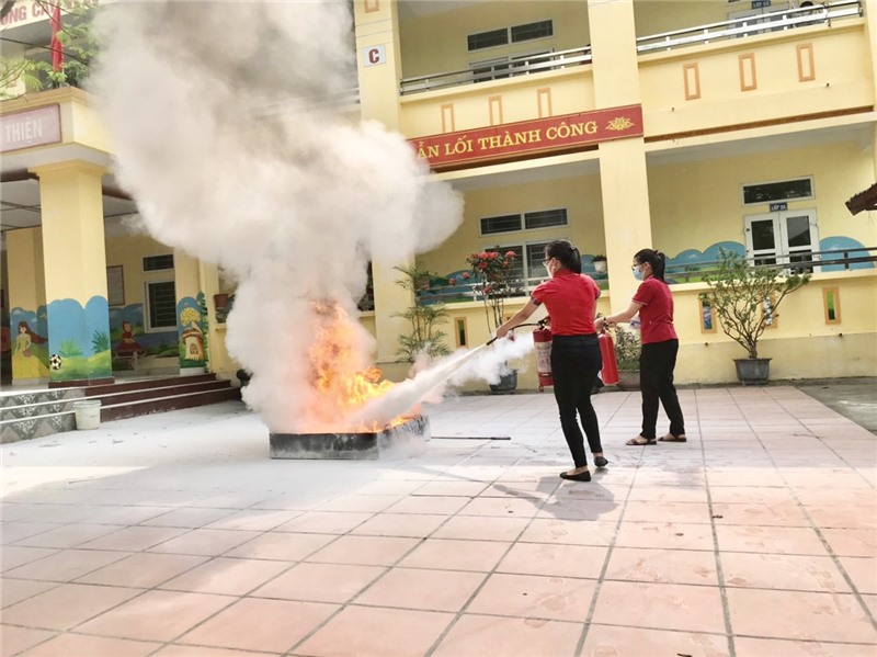 Ngoài ra, cán bộ tuyên truyền cũng đã hướng dẫn cán bộ công nhân viên, giáo viên nhà trường cài app “Báo cháy 114” và quan tâm Zalo “Cục Cảnh sát PCCC và CNCH”; Giáo viên, học sinh nhà trường được tham gia thực hành các kỹ thuật chữa cháy cơ bản như: Sử dụng bình chữa cháy CO2, bình bột để dập tắt đám cháy; kỹ năng thoát hiểm khi có sự cố, tham gia cứu người bị nạn khi có cháy, nổ xảy ra…