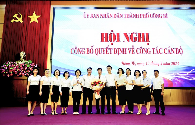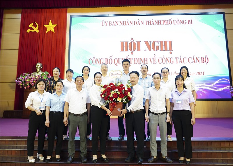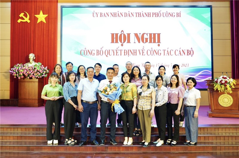 Tại hội nghị, lãnh đạo phòng Nội vụ thành phố đã công bố các Quyết định của UBND thành phố Uông Bí về công tác cán bộ, bao gồm: Quyết định điều động, bổ nhiệm đồng chí Phạm Xuân Thành, Thành ủy viên, Bí thư Đảng ủy, Chủ tịch UBND phường Nam Khê đến nhận công tác tại Phòng Văn hóa - Thông tin thành phố, giữ chức vụ Trưởng phòng kể từ ngày 15/5/2023, thời hạn bổ nhiệm 5 năm; Quyết định bổ nhiệm có thời hạn đối với đồng chí Nguyễn Quốc Hưng, Phó Giám đốc Trung tâm TT-VH thành phố giữ chức vụ Đội trưởng Đội Kiểm tra Trật tự Đô thị và Môi trường thành phố kể từ ngày 10/5/2023, thời hạn bổ nhiệm 5 năm; Quyết định bổ nhiệm có thời hạn đối với đồng chí Nguyễn Văn Thanh, chuyên viên phòng GD&ĐT thành phố giữ chức vụ Phó Trưởng phòng GD&ĐT thành phố kể từ ngày 10/5/2023, thời hạn bổ nhiệm 5 năm.