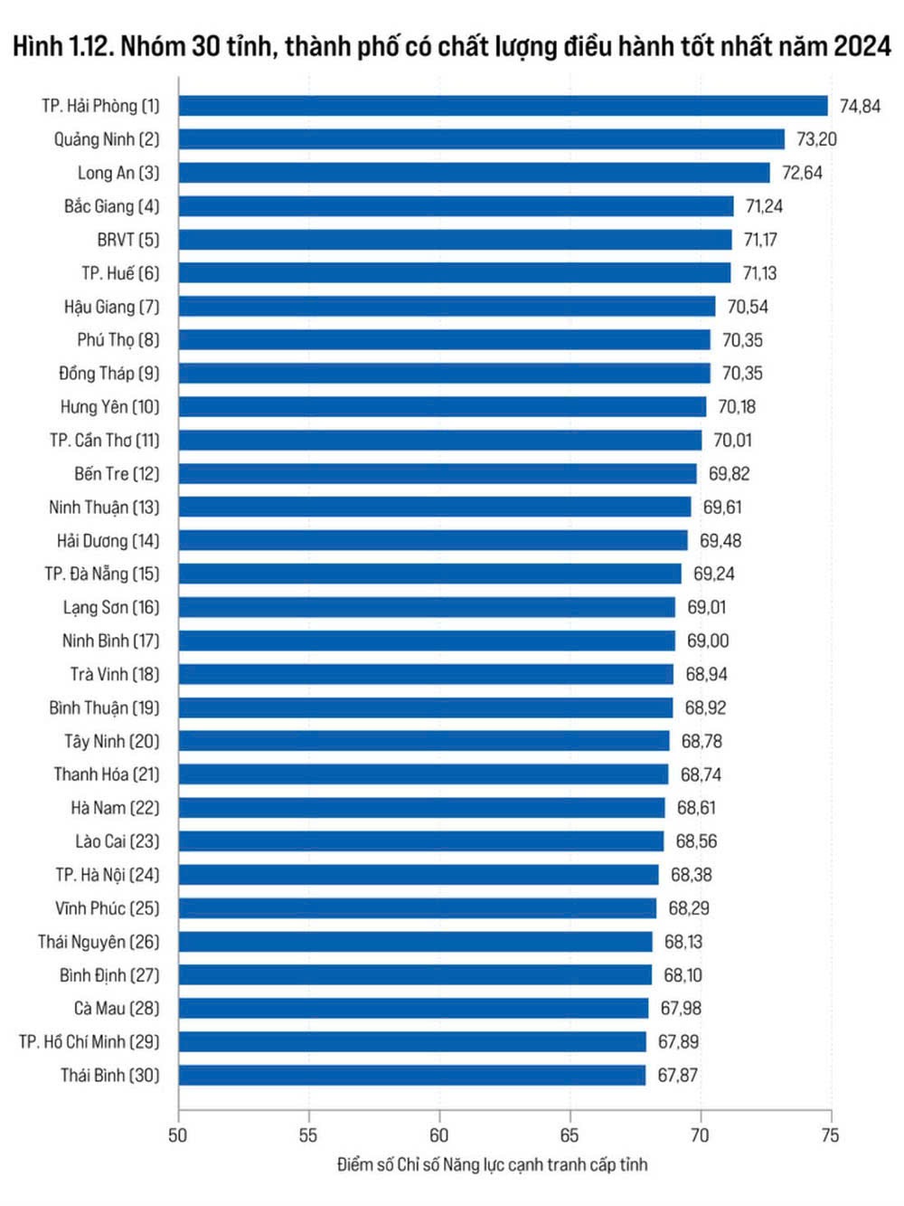Bảng xếp hạng và điểm số PCI năm 2024 của 63 tỉnh, thành phố trong cả nước.