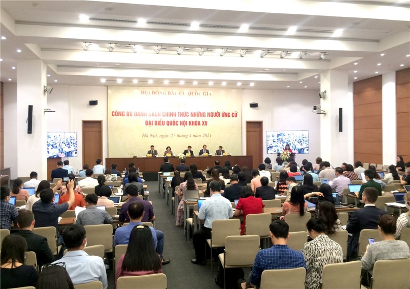 Chiều 27/4, Hội đồng bầu cử quốc gia tổ chức họp báo công bố danh sách chính thức những người ứng cử đại biểu Quốc hội khóa XV. Tổng Thư ký Quốc hội, Chủ nhiệm Văn phòng Quốc hội, Ủy viên Hội đồng bầu cử quốc gia, Chánh văn phòng Hội đồng bầu cử quốc gia Bùi Văn Cường chủ trì họp báo.