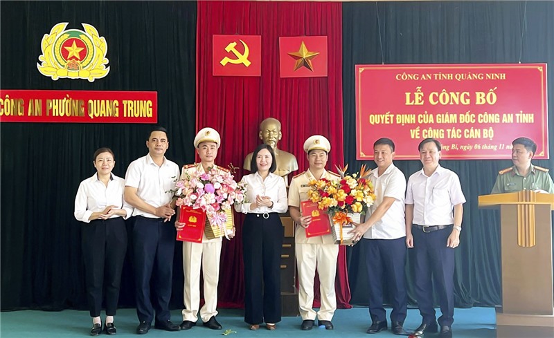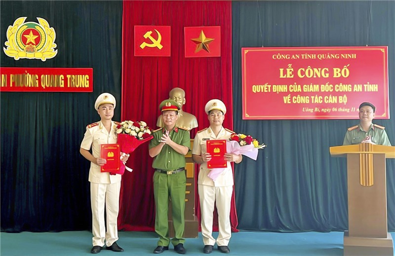 Theo đó, Thiếu tá Vũ Văn Hải, Trưởng Công an xã Thượng Yên Công được điều động đến nhận công tác và giữ chức vụ Trưởng Công an phường Quang Trung kể từ ngày 03/11/2023; Đại uý Lê Trung Kiên, Phó Đội trưởng Đội Thi hành án và Hỗ trợ Tư pháp, Công an thành phố Uông Bí được điều động đến nhận công tác và giữ chức vụ Phó trưởng Công an phường Quang Trung kể từ ngày 03/11/2023.