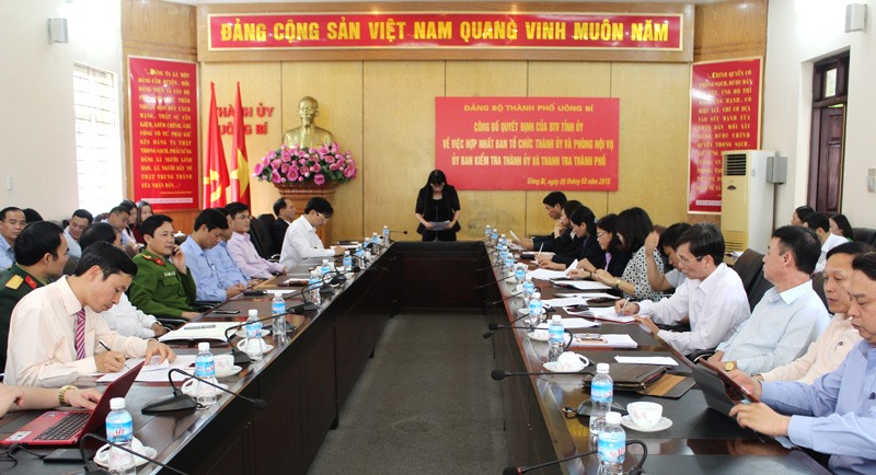 Uông Bí là đơn vị đầu tiên trong toàn Tỉnh công bố quyết định hợp nhất Ban tổ chức Thành ủy và phòng nội vụ thành phố, hợp nhất cơ quan ủy ban kiểm tra thành ủy với thanh tra thành phố. Trước đó, thành phố đã thực hiện việc nhất thể hóa chức danh trưởng ban tổ chức thành ủy và trưởng phòng Nội vụ, Chủ nhiệm Ủy ban kiểm tra thành ủy và Chánh thanh tra thành phố.