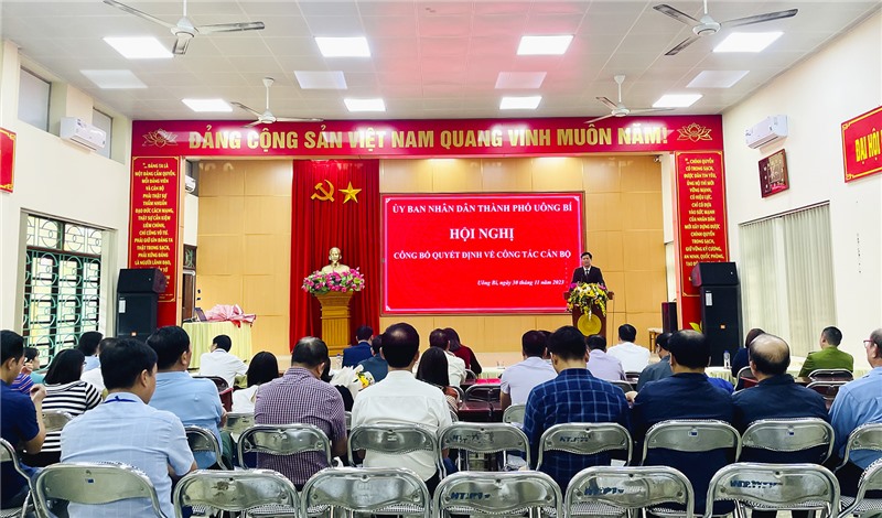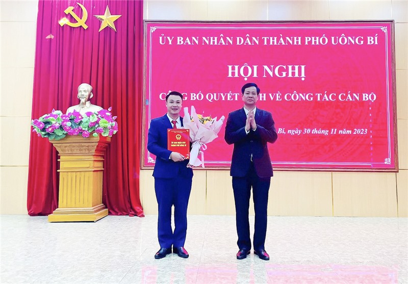 Ngày 30/11, tại UBND phường Trưng Vương, UBND thành phố Uông Bí tổ chức Hội nghị công bố Quyết định về công tác cán bộ. Đồng chí Phạm Tuấn Đạt, Phó Bí thư Thành ủy, Chủ tịch UBND thành phố dự, chúc mừng và trao quyết định.