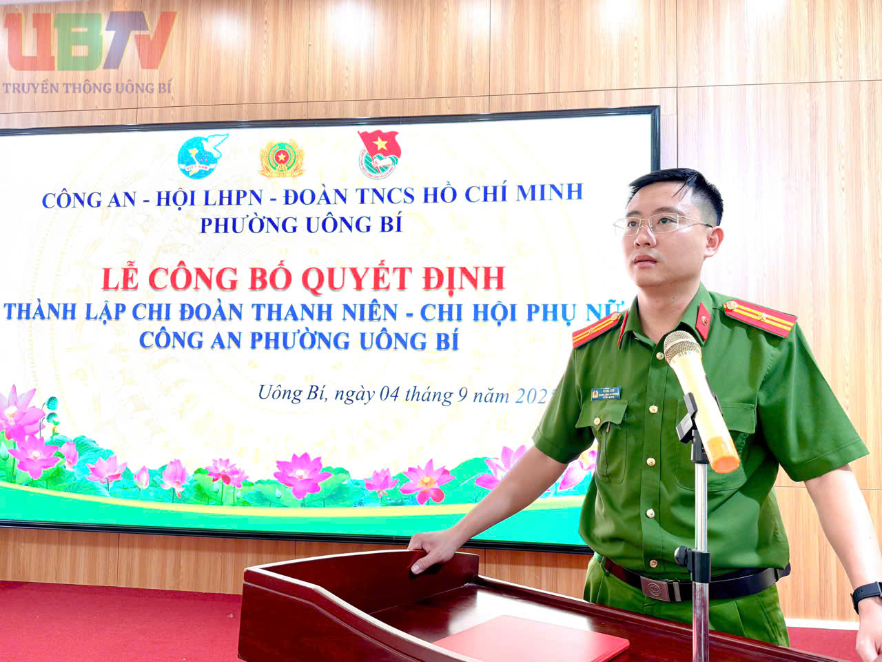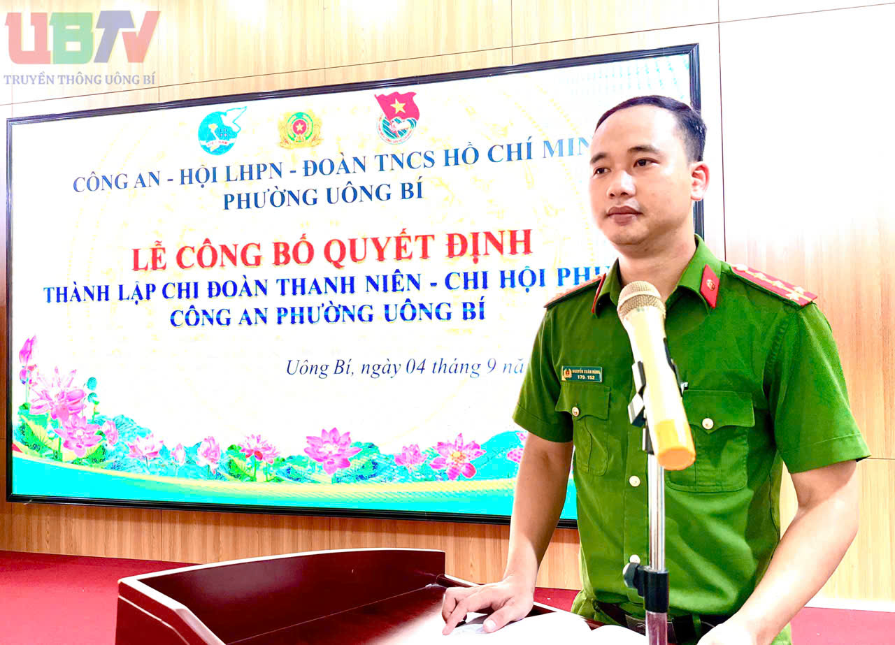Theo Quyết định, Chi đoàn Thanh niên và Chi hội Phụ nữ Công an phường Uông Bí được thành lập trên cơ sở tập hợp đoàn viên, hội viên là cán bộ, chiến sĩ. Đây là môi trường để đoàn viên, hội viên rèn luyện, phát huy sức trẻ, tinh thần đoàn kết, trách nhiệm, xung kích trong thực hiện nhiệm vụ chính trị, công tác chuyên môn cũng như các phong trào thi đua tại địa phương.
