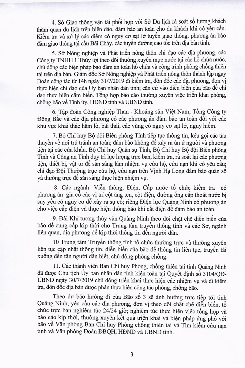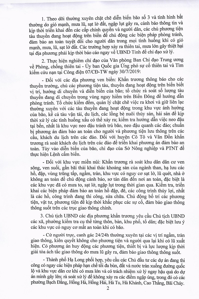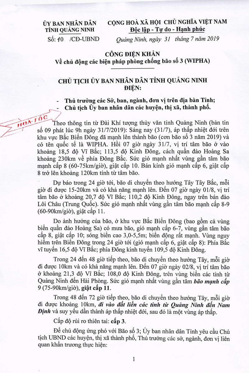 Công điện khẩn về chủ động các biện pháp phòng, chống bão số 3 (WIPHA)