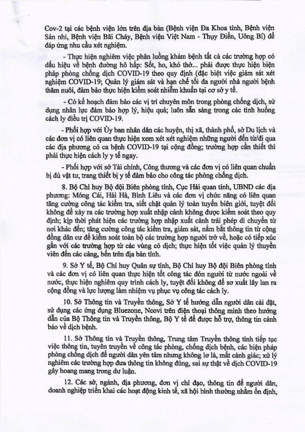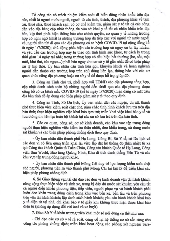 UBND tỉnh vừa ban hành Công điện số 11/CĐ-UBND về việc tăng cường công tác phòng, chống dịch COVID-19 trên địa bàn tỉnh Quảng Ninh.