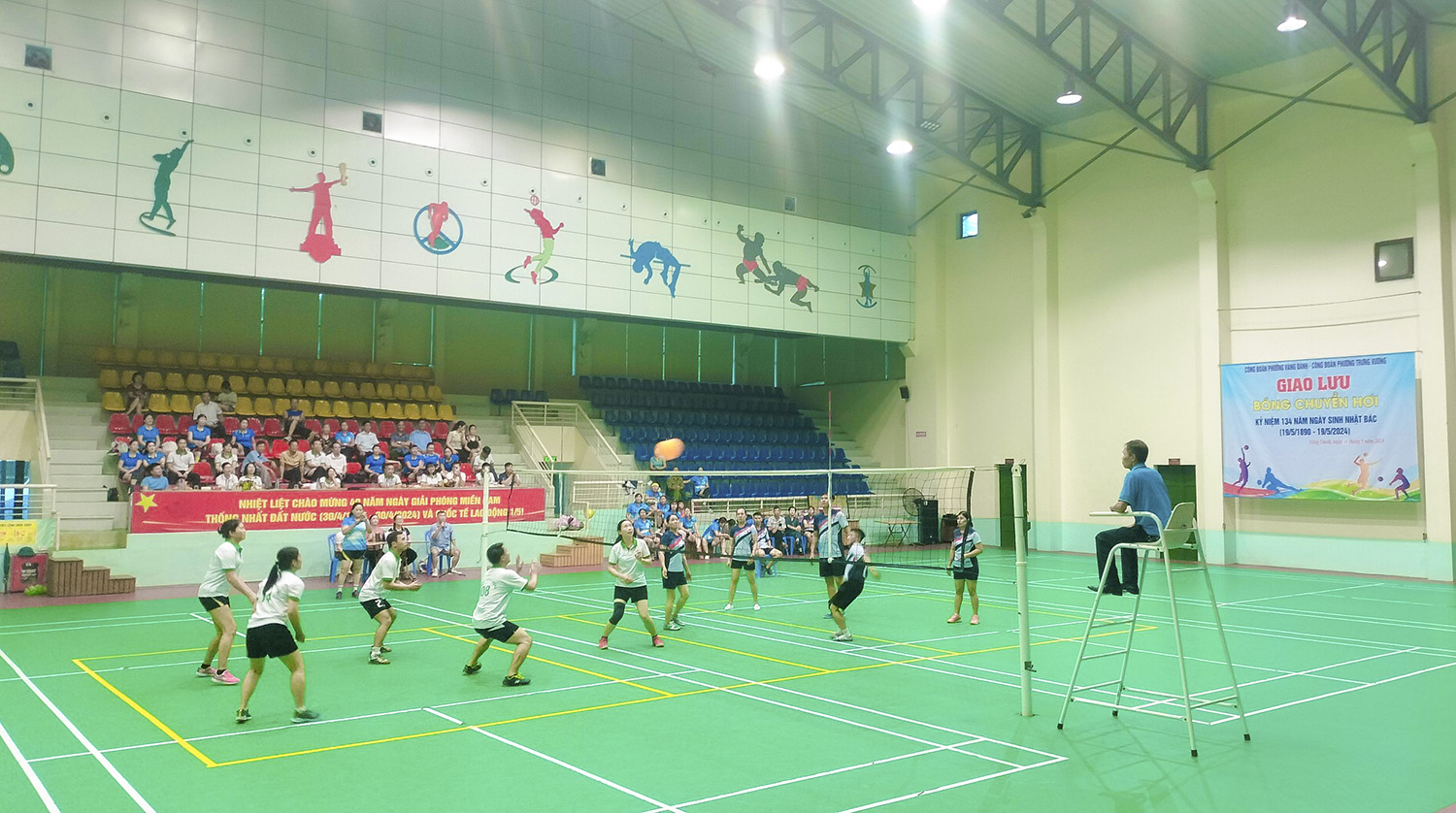 Tham gia giao lưu có 60 vận động viên của 2 đội bóng chuyền nam nữ của 2 đơn vị, thi đấu ở 3 nội dung: nam nữ phối hợp, đội nam và đôi nữ. Với tinh thần thể thao, đoàn kết, các đội bóng đã cống hiến cho khán giả những pha bóng kịch tính, nhiều trận đấu hay và hấp dẫn, tạo không khí vui tươi, phấn khởi trong cán bộ, đảng viên.