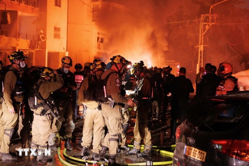 Lực lượng an ninh Israel làm nhiệm vụ tại hiện trường một vụ tấn công bằng tên lửa của Iran ở Haifa, miền bắc Israel, ngày 15/6/2025. (Ảnh: THX/TTXVN)