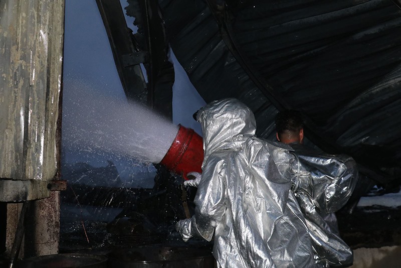 Mặc sức nóng và làn khói thấp nguy hiểm, các lực lượng chữa cháy kiên trì bám trụ vị trí chiến đấu.