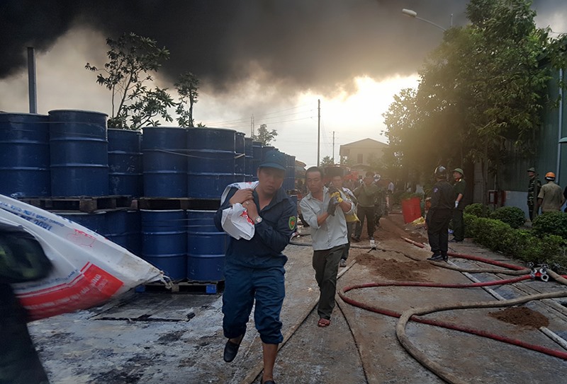 Bên cạnh đó do dây chuyền sản xuất số 3 chứa nhiều chất dễ cháy và dưới tác động của gió lớn, ngọn lửa bùng phát rộng, gây nhiều khó khăn cho công tác chữa cháy. Bởi vậy nếu vụ cháy không được nhanh chóng khống chế, dập tắt sẽ dẫn đến nguy cơ thiêu dụi toàn bộ khối lượng sản phẩm, hàng hóa trên, gây thiệt hại nặng nề cho Công ty.