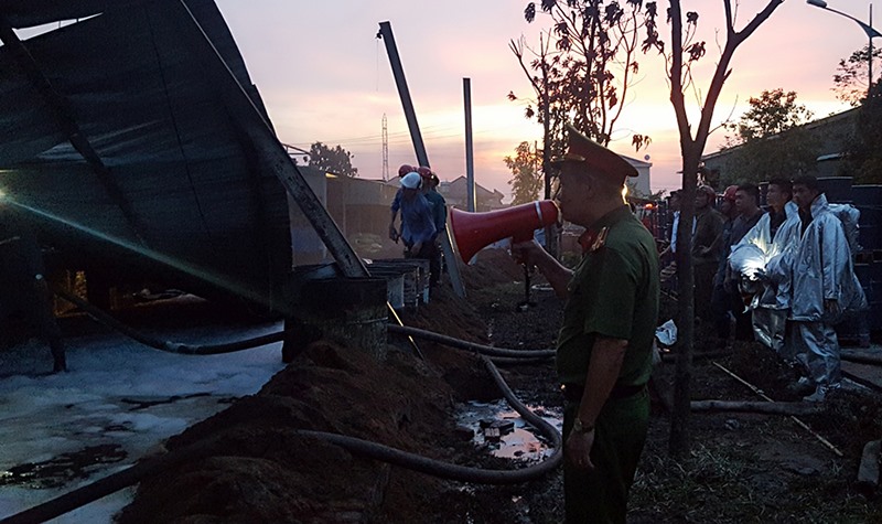 Người chiến sỹ công an này đã liên tục chỉ huy tại hiện trường đến lúc vụ cháy được dập tắt hẳn.