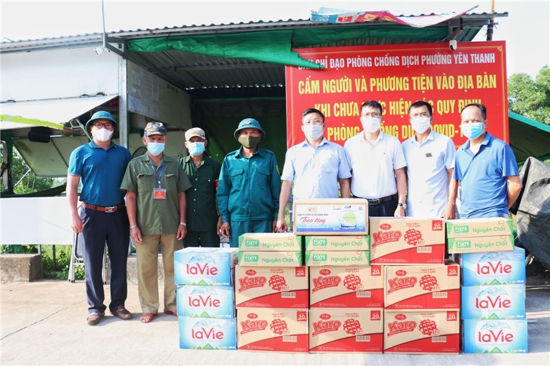 Trao tặng quà các lực lượng thực hiện nhiệm vụ tại chốt kiểm soát dịch trên địa bàn phường Yên Thanh.