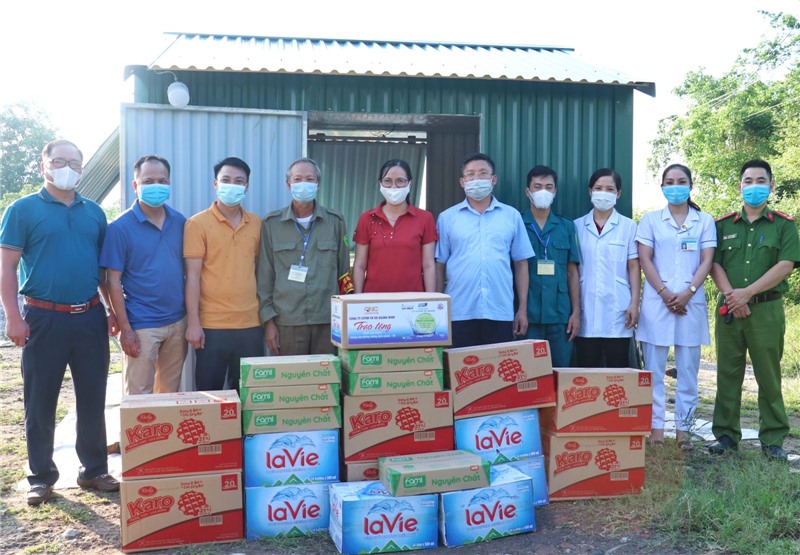 Công ty CP Xi măng và Xây dựng Quảng Ninh (Xi măng Lam Thạch) tặng quà các lực lượng thực hiện nhiệm vụ tại chốt kiểm soát phòng, chống dịch cầu Đá Bạc.