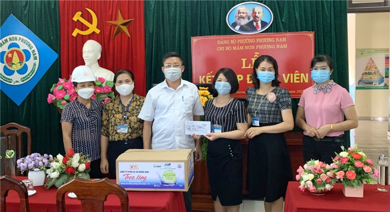 Công ty CP Xi măng và Xây dựng Quảng Ninh tặng quà cho các trường học trên địa bàn phường Phương Nam.