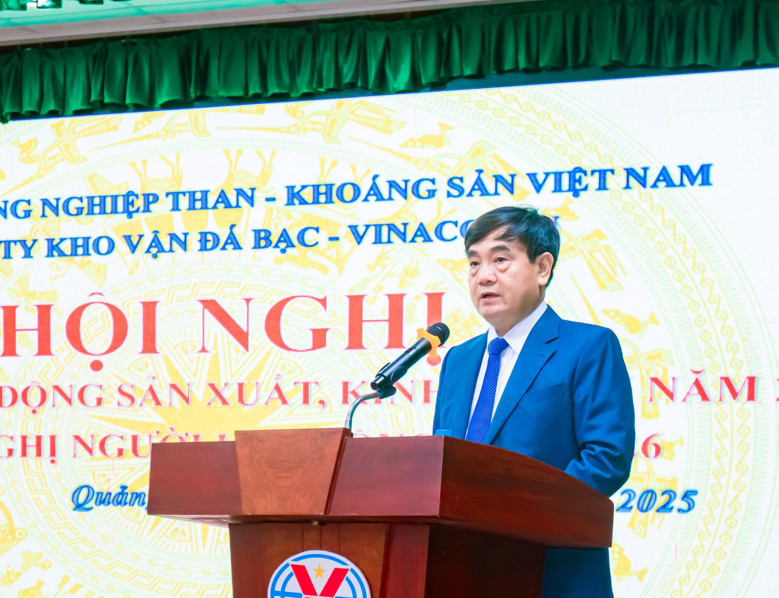 Phát biểu và chỉ đạo tại Hội nghị, đồng chí Nguyễn Hoàng Trung - Thành viên HĐTV TKV đã ghi nhận và biểu dương những kết quả đạt được của cán bộ công nhân viên Công ty. Bên cạnh đó, đồng chí cũng đề nghị trong năm 2026, Công ty bám sát các kế hoạch, cơ chế điều hành của Tập đoàn và phối hợp chặt chẽ với các đơn vị trong vùng và các ban của Tập đoàn điều hành sản xuất hợp lý, tập trung quy hoạch kho bãi, tăng cường vận tải nhập than cho các đơn vị sản xuất trong vùng và giao than cho các hộ theo đúng kế hoạch, đảm bảo tiến độ; Đẩy mạnh đầu tư xây dựng và hoàn thiện hạ tầng sản xuất, đặc biệt hạ tầng kho bãi và các mục dịch vụ pha trộn than nâng cao hiệu quả quản trị chi phí điều hành theo cơ chế giao khoán; Đẩy mạnh ứng dụng chuyển đổi số trong mọi lĩnh vực, đặc biệt là trong sản xuất, dịch vụ, chế biến và kho bãi; Tiếp tục thực hiện tinh gọn bộ máy, sắp xếp tổ chức, tinh giản lao động theo chỉ đạo của Tập đoàn và Giải quyết chế độ cho người lao động đảm bảo đúng quy định; Quan tâm các chế độ phúc lợi, đặc biệt tập trung chăm lo Tết cho người lao động.