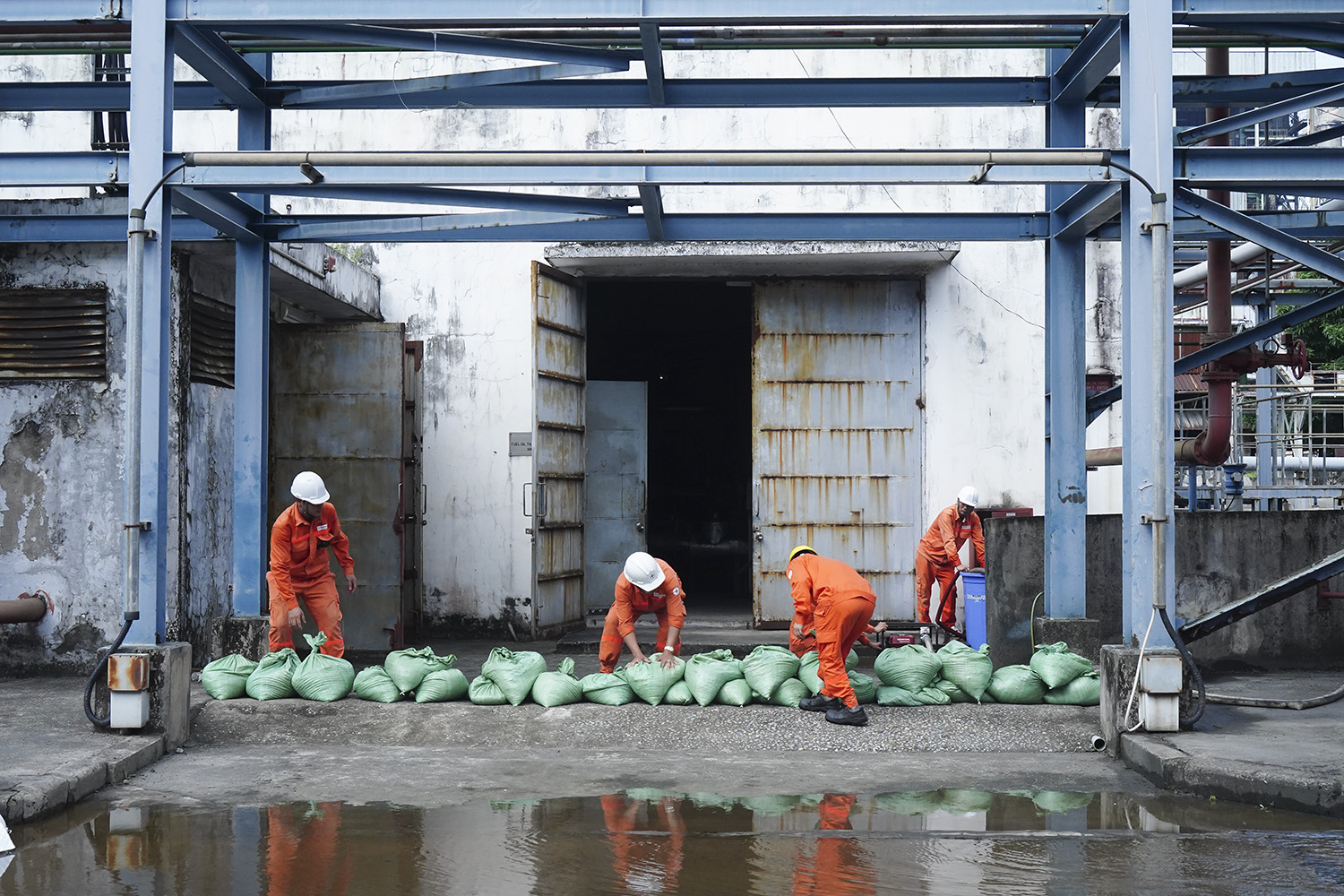 Nhận được tin báo sự cố, Ban chỉ huy phòng chống thiên tai và tìm kiếm cứu nạn (PCTT và TKCN) Công ty đánh giá tình hình, nhanh chóng phân công nhiệm vụ, huy động Đội xung kích PCTT&TKCN Công ty và lực lượng tại các đơn vị, hiệp đồng các lực lượng xử lý sự cố chia thành các mũi khẩn trương các bước ứng cứu như thực hiện bơm xăng, bơm nước để xử lý tình trạng ngập nước tại trạm dầu DO, kết hợp sử dụng các bơm nước di động, chuyển nước đọng có lẫn dầu về khu xử lý; sử dụng các bao cát đắp, phao quây dầu, be bờ trước trạm dầu DO phối hợp ứng phó sự cố tràn dầu. Ban chỉ huy cũng điều động xe cứu hỏa cùng Đội chữa cháy chuyên ngành đến hiện trường để xử lý sự cố.