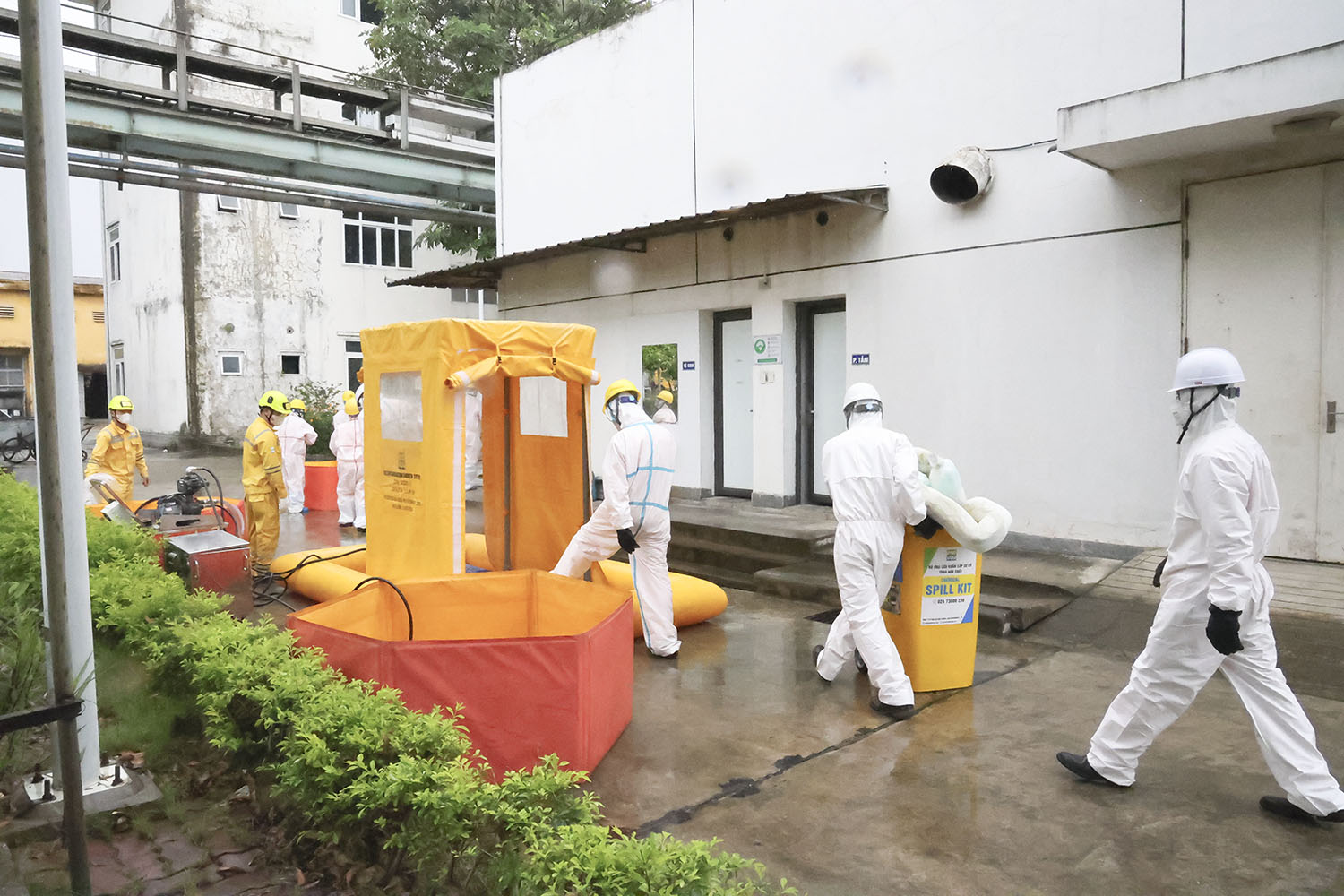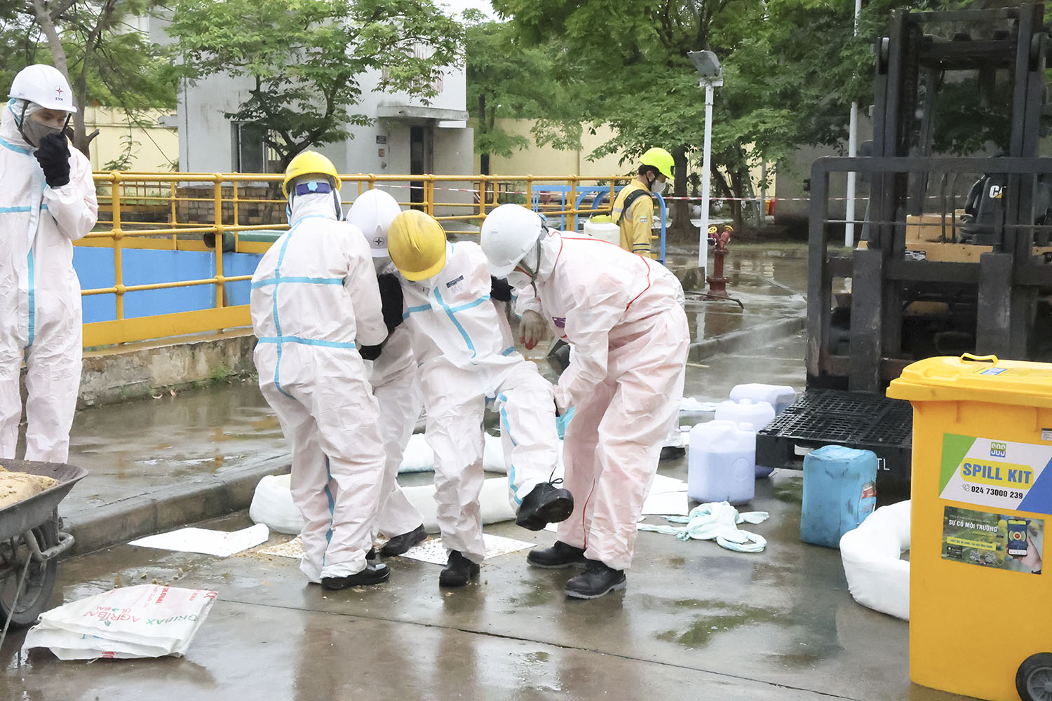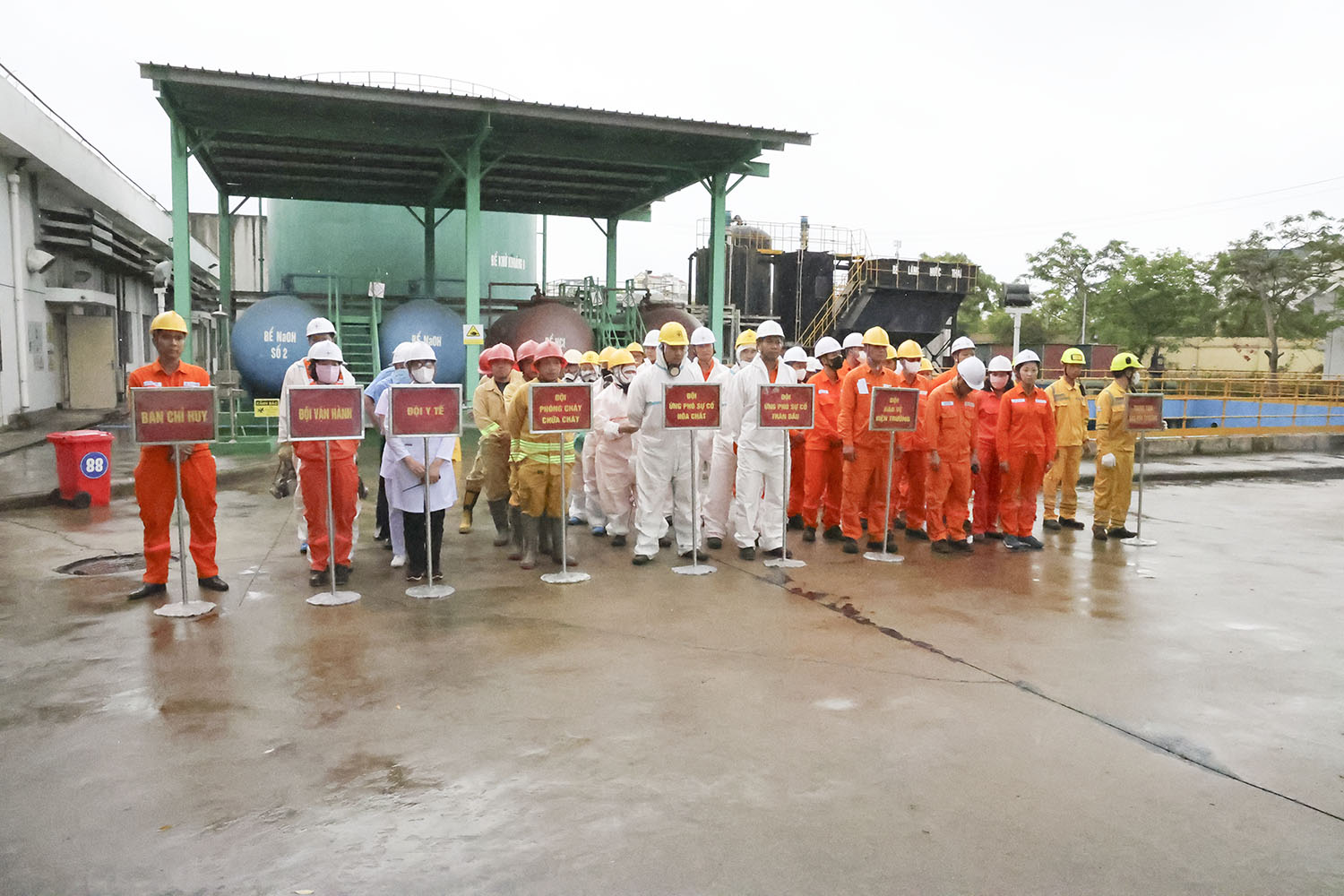 Diễn tập được triển khai theo ba giai đoạn: phát hiện - báo động - ứng phó tại chỗ; ứng phó mở rộng - ngăn chặn - khắc phục; kết thúc - tổng kết rút kinh nghiệm. Các lực lượng tham gia đã thực hiện đầy đủ các nội dung theo kịch bản: sơ tán người khỏi vùng nguy hiểm, sơ cứu nạn nhân nhiễm khí độc và bị thương, khoanh vùng và thu gom hóa chất/dầu tràn, kiểm soát nguy cơ cháy nổ, xử lý môi trường sau sự cố.